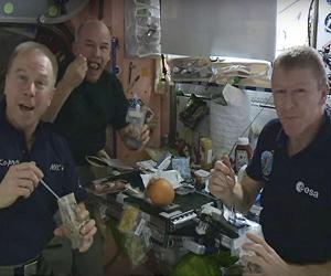 Astronauts aboard the International Space Station recently feasted on a spicy Jamaican rice and beans with coconut milk entree cooked up by a team of culinary students from Phoebus High School in Hampton, Virginia. The Phoebus team's dish won the 2015 High School Students United with NASA to Create Hardware, or HUNCH, Culinary Challenge. They had to compete against six other high school culinary teams last year during a visit to the Space Food Systems Laboratory at NASA's Johnson Space Center in Houston. The spicy concoction launched to the ISS this past April aboard a SpaceX Dragon spacecraft. "We wanted to thank the HUNCH team for being able to develop such a great recipe and get it on the space station," says Expedition 47 Commander Tim Kopra in a video message to the students. "We just want to let you know that we really enjoy it and congratulations again." Kopra, along with flight engineers Jeff Williams and Tim Peake, filmed themselves tasting the entree. Bottles of ketchup and spicy brown mustard, and a package of dried cranberries are clearly visible in the background. A bottle of what appears to be Sriracha hot sauce pokes out of a plastic storage bag. Astronaut Jeff Williams lets a spoonful of the rice and beans float in front of him for a second. "Thank you. Tastes great," says European Space Agency astronaut Tim Peake. A red pepper risotto created by high school students from Passaic County Technical Institute in Wayne, New Jersey, won the 2016 HUNCH Culinary Challenge. It will be processed for flight and enjoyed by astronauts aboard the space station next year. Watch the video here