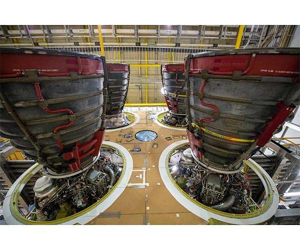 The SLS core stage is powered by four Aerojet Rocketdyne RS-25 engines, each capable of generating more than 500,000 pounds of thrust. Like Artemis I, the next three SLS flights are using heritage Space Shuttle Main Engines that have been upgraded with modern flight controllers, while subsequent missions will have newly built RS-25 engines that have been redesigned for improved performance and lower costs, and feature simplified component designs that take advantage of 3D printing and other manufacturing advances.
