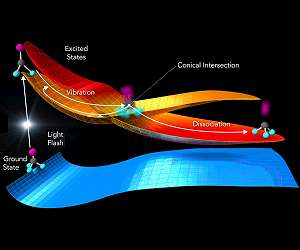 SLAC's ultra-high-speed 'electron camera' catches molecules at a crossroads Menlo Park CA (SPX) Jul 25, 2018 An extremely fast "electron camera" at the Department of Energy's SLAC National Accelerator Laboratory has produced the most detailed atomic movie of the decisive point where molecules hit by light can either stay intact or break apart. The results could lead to a better understanding of how molecules respond to light in processes that are crucial for life, like photosynthesis and vision, or that are potentially harmful, such as DNA damage from ultraviolet light. In the study, published in S ... read more