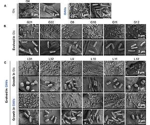 Electron transfer made visible using UV light The rate of electron transfer from the EES to the iron oxide, and thus the efficiency of the electron transport, can be made visible with UV light. This light is absorbed differently by the EES depending on whether they are underway with or without the two electrons.