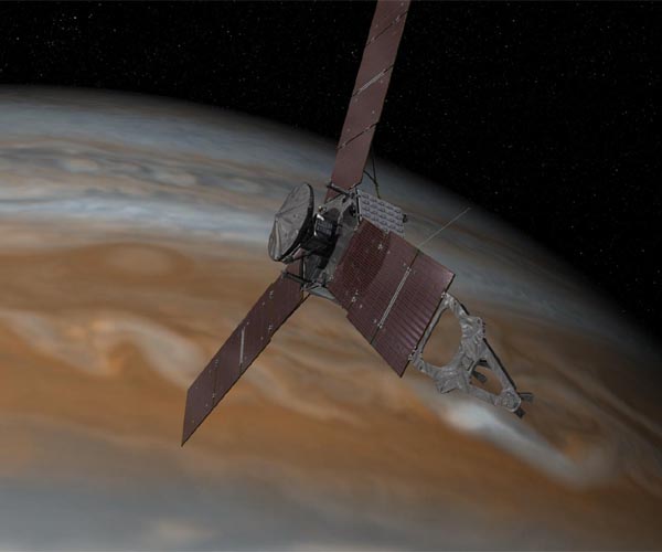 NASA's Juno spacecraft completed its 47th close pass of Jupiter on Dec. 14. Afterward, as the solar-powered orbiter was sending its science data to mission controllers from its onboard computer, the downlink was disrupted. The issue - an inability to directly access the spacecraft memory storing the science data collected during the flyby - was most likely caused by a radiation spike as Juno flew through a radiation-intensive portion of Jupiter's magnetosphere. Mission controllers at NASA's Jet Propulsion Laboratory and its mission partners successfully rebooted the computer and, on Dec. 17, put the spacecraft into safe mode, a precautionary status in which only essential systems operate. As of Dec. 22, steps to recover the flyby data yielded positive results, and the team is now downlinking the science data. There is no indication that the science data through the time of closest approach to Jupiter, or from the spacecraft's flyby of Jupiter's moon Io, was adversely affected. The remainder of the science data collected during the flyby is expected to be sent down to Earth over the next week, and the health of the data will be verified at that time. The spacecraft is expected to exit safe mode in about a week's time. Juno's next flyby of Jupiter will be on Jan. 22, 2023.