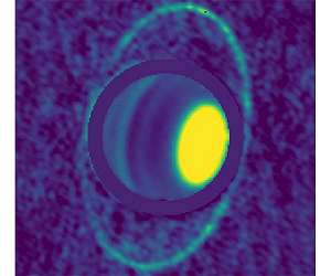 Astronomers See "Warm" Glow of Uranus's Rings Berkeley CA (SPX) Jun 21, 2019 The rings of Uranus are invisible to all but the largest telescopes - they weren't even discovered until 1977 - but they're surprisingly bright in new heat images of the planet taken by two large telescopes in the high deserts of Chile. The thermal glow gives astronomers another window onto the rings, which have been seen only because they reflect a little light in the visible, or optical, range and in the near-infrared. The new images taken by the Atacama Large Millimeter/submillimeter Array (ALM ... read more