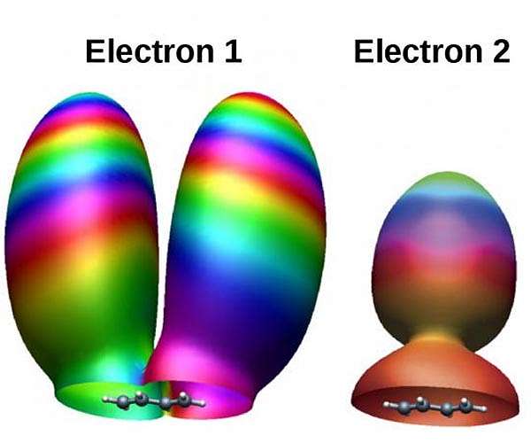 Scientists from the Max Born Institute for Nonlinear Optics and Short Pulse Spectroscopy (MBI) in Berlin combined state-of-the-art experiments and numerical simulations to test a fundamental assumption underlying strong-field physics. Their results refine our understanding of strong-field processes such as high harmonic generation (HHG) and laser-induced electron diffraction (LIED). Strong infrared laser pulses can extract an electron from a molecule (ionization), accelerate it away into free space, then turn it around (propagation), and finally collide it with the molecule (recollision). This is the widely used three-step model of strong-field physics. In the recollision step, the electron may, for example, recombine with the parent ion, giving rise to high harmonic generation, or scatter elastically, giving rise to laser-induced electron diffraction. One of the commonly used assumptions underlying attosecond physics is that, in the propagation step, the initial structure of the ionized electron is "washed out", thus losing the information on the originating orbital. So far, this assumption was not experimentally verified in molecular systems. A combined experimental and theoretical study at the Max Born Institute Berlin investigated the strong-field driven electron recollision dynamics in the 1,3-trans-butadiene molecule. In this molecule, the interaction with the strong laser field leads mainly to the ionization of two outermost electrons exhibiting quite different densities (Figure 1). The state-of-the-art experiments and simulations then allowed the scientists to measure and calculate the high-angle rescattering probability for each electron separately. These probabilities turned out to be quite different both in the measurements and in the simulations. These observations clearly demonstrate that the returning electrons do retain structural information on their initial molecular orbital.