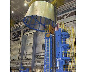 The aft cone, or bottom portion, of a test version of the launch vehicle stage adapter (LVSA) for the world's most powerful rocket, NASA's Space Launch System, is moved out of a weld tool after undergoing its final vertical weld at the agency's Marshall Space Flight Center in Huntsville, Alabama. The LVSA will connect two major sections of the SLS - the core stage and the interim cryogenic propulsion stage (ICPS). Marshall and Teledyne Brown Engineering - prime contractor on the LVSA work - have two more major welds to finish the structural test article. When completed, the test hardware will be stacked with other structural test articles of the upper part of the rocket and tested in late 2016 at Marshall. The testing will verify the integrity of the hardware and ensure it can withstand the loads it may experience during flight.