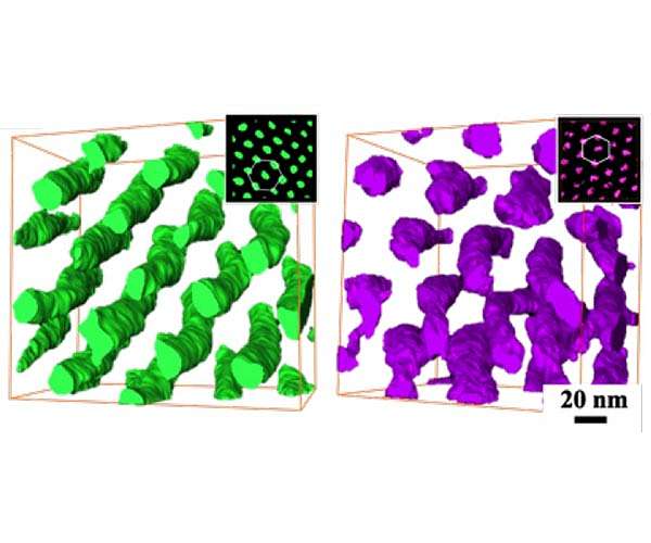 As below, so above. That seems to be an operating principle for molecules that start with a basic chirality - or "handed-ness" - and pass it on as they combine into larger structures. An international team that included Rice University materials scientist Edwin Thomas pried a new, fundamental detail from its bottom-up creation of several block copolymers, synthetic materials that naturally assemble themselves from small building blocks. They found the left or right chirality established by the smallest building blocks (monomers) of the polymer replicated itself as the microscopic material came together to form larger scale spiraling structures akin to those commonly found in nature - for instance, in helical DNA - and could enable the creation of materials with unique properties. "From a properties standpoint, chirality is pretty big for optics," Thomas said. "The hope is that we can control self-assembly of chiral entities to make super-chiral entities 10 or 100 times bigger so that they are able to interact with visible or even infrared light." The discovery led by the Rice professor's experimental colleagues in Taiwan is the focus of a paper in the Proceedings of the National Academy of Sciences. Thomas and his team have spent years developing expertise in block copolymers, a class of metamaterials that can assemble themselves into many distinct patterns, including alternating layers. One alternating layer copolymer they created proved able to absorb the energy of a micro-scale bullet, while another formed a color-changing film able to act as sensor in food packaging that could detect spoilage and another that could be used to reversibly write in color on ordinary paper. Thomas noted the importance of chirality in nature, especially in drug design, where a left-handed molecule can be a savior while the same molecule, but right-handed, is toxic. Chiral-specific copolymers that mimic nature could also become tough-but-flexible compounds with unique, tunable properties, he said. Scientists at the National Tsing Hua and National Chung Cheng universities in Taiwan grew arrays of polymer cylinders from monomers and showed through tomographic electron microscope 3D reconstructions and videos that the cylinders twisted themselves to the left or right as dictated by the molecular building blocks. Thomas said the resulting elastic polymers could be stretched and tuned on demand to react to specific wavelengths of light. "We could make photonic crystals that reflect right-handed light and transmit left-handed light," he said. "With circularly polarized light, it could transmit for one handedness and reflect for the other handedness. It would be a mirror for right and perfectly transparent for left. "I'm looking forward to experimenting with light with these materials, because light is fascinating," Thomas said. "You can do things you can literally see by manipulating the material." He looks forward to the creation of chiral objects that are even more complex. "What if we can make left-chiral structures that fuse into right-chiral structures? And suppose we can do it in three dimensions? What happens there? "Every time we solve something or think we've found some interesting thing, all we've done is opened up a thousand new questions," he said. "And I have new questions."