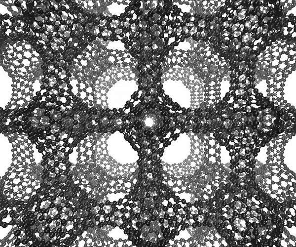 The discovery of buckyballs surprised and delighted chemists in the 1980s, nanotubes jazzed physicists in the 1990s, and graphene charged up materials scientists in the 2000s, but one nanoscale carbon structure - a negatively curved surface called a schwarzite - has eluded everyone. Until now. University of California, Berkeley, chemists have proved that three carbon structures recently created by scientists in South Korea and Japan are in fact the long-sought schwarzites, which researchers predict will have unique electrical and storage properties like those now being discovered in buckminsterfullerenes (buckyballs or fullerenes for short), nanotubes and graphene. The new structures were built inside the pores of zeolites, crystalline forms of silicon dioxide - sand - more commonly used as water softeners in laundry detergents and to catalytically crack petroleum into gasoline. Called zeolite-templated carbons (ZTC), the structures were being investigated for possible interesting properties, though the creators were unaware of their identity as schwarzites, which theoretical chemists have worked on for decades. Based on this theoretical work, chemists predict that schwarzites will have unique electronic, magnetic and optical properties that would make them useful as supercapacitors, battery electrodes and catalysts, and with large internal spaces ideal for gas storage and separation. UC Berkeley postdoctoral fellow Efrem Braun and his colleagues identified these ZTC materials as schwarzites based of their negative curvature, and developed a way to predict which zeolites can be used to make schwarzites and which can't. "We now have the recipe for how to make these structures, which is important because, if we can make them, we can explore their behavior, which we are working hard to do now," said Berend Smit, an adjunct professor of chemical and biomolecular engineering at UC Berkeley and an expert on porous materials such as zeolites and metal-organic frameworks. Smit, the paper's corresponding author, Braun and their colleagues in Switzerland, China, Germany, Italy and Russia will report their discovery this week in the journal Proceedings of the National Academy of Sciences.