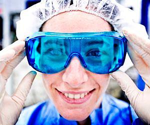 ESA's laboratories are equipped with a huge range of measuring tools, but the most versatile remains the human eye - and it must be looked after. These protective goggles are worn while using lasers to align plasma-measuring probes, in preparation for test firings of space thrusters in ESA's Propulsion Laboratory. Based at ESA's technical centre ESTEC in Noordwijk, the Netherlands, the Propulsion Laboratory specialises in the testing of ion engines and other thrusters that operate outside Earth's atmosphere. These are test-fired in specialised vacuum chambers, with diagnostic devices - Faraday and Langmuir probes as well as retarding potential analysers - placed at precise points within the thruster's plumes to gather data on its performance. Engineer Giuditta Montesanti is pictured while preparing for a test: the thruster firings themselves take place out of sight, requiring no special protection. The Lab performs testing both for general research and development and in support of European space projects. This spring will see testing of the MiniRIT micro-propulsion thruster for next year's LISA Pathfinder mission. This mission, testing technologies for gravitational wave detection, will be the most precisely controlled spacecraft ever flown, requiring thrusters that are sensitive enough to push back against the force of incoming sunshine.