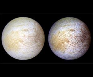 A new paper led by a NASA researcher shows that hydrogen peroxide is abundant across much of the surface of Jupiter's moon Europa. The authors argue that if the peroxide on the surface of Europa mixes into the ocean below, it could be an important energy supply for simple forms of life, if life were to exist there. The paper was published online recently in the Astrophysical Journal Letters. "Life as we know it needs liquid water, elements like carbon, nitrogen, phosphorus and sulfur, and it needs some form of chemical or light energy to get the business of life done," said Kevin Hand, the paper's lead author, based at NASA's Jet Propulsion Laboratory, Pasadena, Calif. "Europa has the liquid water and elements, and we think that compounds like peroxide might be an important part of the energy requirement. The availability of oxidants like peroxide on Earth was a critical part of the rise of complex, multicellular life." The paper, co-authored by Mike Brown of the California Institute of Technology in Pasadena, analyzed data in the near-infrared range of light from Europa, using the Keck II Telescope on Mauna Kea, Hawaii, over four nights in September 2011. The highest concentration of peroxide found was on the side of Europa that always leads in its orbit around Jupiter, with a peroxide abundance of 0.12 percent relative to water. (For perspective, this is roughly 20 times more diluted than the hydrogen peroxide mixture available at drug stores.) The concentration of peroxide in Europa's ice then drops off to nearly zero on the hemisphere of Europa that faces backward in its orbit. Hydrogen peroxide was first detected on Europa by NASA's Galileo mission, which explored the Jupiter system from 1995 to 2003, but Galileo observations were of a limited region. The new results show that peroxide is widespread across much of the surface of Europa, and the highest concentrations are reached in regions where Europa's ice is nearly pure water with very little sulfur contamination. The peroxide is created by the intense radiation processing of Europa's surface ice that comes from the moon's location within Jupiter's strong magnetic field. "The Galileo measurements gave us tantalizing hints of what might be happening all over the surface of Europa, and we've now been able to quantify that with our Keck telescope observations," Brown said. "What we still don't know is how the surface and the ocean mix, which would provide a mechanism for any life to use the peroxide." The scientists think hydrogen peroxide is an important factor for the habitability of the global liquid water ocean under Europa's icy crust because hydrogen peroxide decays to oxygen when mixed into liquid water. "At Europa, abundant compounds like peroxide could help to satisfy the chemical energy requirement needed for life within the ocean, if the peroxide is mixed into the ocean," said Hand. The study was funded in part by the NASA Astrobiology Institute through the Icy Worlds team based at JPL, a division of Caltech. The NASA Astrobiology Institute, based at NASA's Ames Research Center, Moffett Field, Calif., is a partnership among NASA, 15 U.S. teams and 13 international consortia. The Institute is part of NASA's astrobiology program, which supports research into the origin, evolution, distribution and future of life on Earth and the potential for life elsewhere.