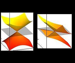 An international team of researchers has predicted the existence of a new type of particle called the type-II Weyl fermion in metallic materials. When subjected to a magnetic field, the materials containing the particle act as insulators for current applied in some directions and as conductors for current applied in other directions. This behavior suggests a range of potential applications, from low-energy devices to efficient transistors. The researchers theorize that the particle exists in a material known as tungsten ditelluride (WTe2), which the researchers liken to a "material universe" because it contains several particles, some of which exist under normal conditions in our universe and others that may exist only in these specialized types of crystals. The research appeared in the journal Nature this week. The new particle is a cousin of the Weyl fermion, one of the particles in standard quantum field theory. However, the type-II particle exhibits very different responses to electromagnetic fields, being a near perfect conductor in some directions of the field and an insulator in others. The research was led by Princeton University Associate Professor of Physics B. Andrei Bernevig, as well as Matthias Troyer and Alexey Soluyanov of ETH Zurich, and Xi Dai of the Chinese Academy of Sciences Institute of Physics. The team included Postdoctoral Research Associates Zhijun Wang at Princeton and QuanSheng Wu at ETH Zurich, and graduate student Dominik Gresch at ETH Zurich. The particle's existence was missed by physicist Hermann Weyl during the initial development of quantum theory 85 years ago, say the researchers, because it violated a fundamental rule, called Lorentz symmetry, that does not apply in the materials where the new type of fermion arises. Particles in our universe are described by relativistic quantum field theory, which combines quantum mechanics with Einstein's theory of relativity. Under this theory, solids are formed of atoms that consist of a nuclei surrounded by electrons. Because of the sheer number of electrons interacting with each other, it is not possible to solve exactly the problem of many-electron motion in solids using quantum mechanical theory. Instead, our current knowledge of materials is derived from a simplified perspective where electrons in solids are described in terms of special non-interacting particles, called quasiparticles, that move in the effective field created by charged entities called ions and electrons. These quasiparticles, dubbed Bloch electrons, are also fermions. Just as electrons are elementary particles in our universe, Bloch electrons can be considered the elementary particles of a solid. In other words, the crystal itself becomes a "universe," with its own elementary particles. In recent years, researchers have discovered that such a "material universe" can host all other particles of relativistic quantum field theory. Three of these quasiparticles, the Dirac, Majorana, and Weyl fermions, were discovered in such materials, despite the fact that the latter two had long been elusive in experiments, opening the path to simulate certain predictions of quantum field theory in relatively inexpensive and small-scale experiments carried out in these "condensed matter" crystals. These crystals can be grown in the laboratory, so experiments can be done to look for the newly predicted fermion in WTe2 and another candidate material, molybdenum ditelluride (MoTe2). "One's imagination can go further and wonder whether particles that are unknown to relativistic quantum field theory can arise in condensed matter," said Bernevig. There is reason to believe they can, according to the researchers. The universe described by quantum field theory is subject to the stringent constraint of a certain rule-set, or symmetry, known as Lorentz symmetry, which is characteristic of high-energy particles. However, Lorentz symmetry does not apply in condensed matter because typical electron velocities in solids are very small compared to the speed of light, making condensed matter physics an inherently low-energy theory. "One may wonder," Soluyanov said, "if it is possible that some material universes host non-relativistic 'elementary' particles that are not Lorentz-symmetric?" This question was answered positively by the work of the international collaboration. The work started when Soluyanov and Dai were visiting Bernevig in Princeton in November 2014 and the discussion turned to strange unexpected behavior of certain metals in magnetic fields (Nature 514, 205-208, 2014, doi:10.1038/nature13763). This behavior had already been observed by experimentalists in some materials, but more work is needed to confirm it is linked to the new particle. The researchers found that while relativistic theory only allows a single species of Weyl fermions to exist, in condensed matter solids two physically distinct Weyl fermions are possible. The standard type-I Weyl fermion has only two possible states in which it can reside at zero energy, similar to the states of an electron which can be either spin-up or spin-down. As such, the density of states at zero energy is zero, and the fermion is immune to many interesting thermodynamic effects. This Weyl fermion exists in relativistic field theory, and is the only one allowed if Lorentz invariance is preserved. The newly predicted type-2 Weyl fermion has a thermodynamic number of states in which it can reside at zero energy - it has what is called a Fermi surface. Its Fermi surface is exotic, in that it appears along with touching points between electron and hole pockets. This endows the new fermion with a scale, a finite density of states, which breaks Lorentz symmetry. The discovery opens many new directions. Most normal metals exhibit an increase in resistivity when subject to magnetic fields, a known effect used in many current technologies. The recent prediction and experimental realization of standard type-I Weyl fermions in s