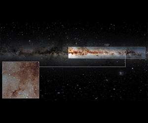 Billions of celestial objects revealed in gargantuan survey of the Milky Way Washington DC (SPX) Jan 19, 2023 Astronomers have released a gargantuan survey of the galactic plane of the Milky Way. The new dataset contains a staggering 3.32 billion celestial objects - arguably the largest such catalog so far. The data for this unprecedented survey were taken with the Dark Energy Camera, built by the US Department of Energy, at the NSF's Cerro Tololo Inter-American Observatory in Chile, a Program of NOIRLab. The Milky Way Galaxy contains hundreds of billions of stars, glimmering star-forming regions, and tow ... read more
