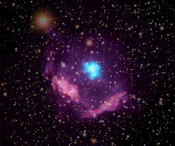 Scientists have confirmed the identity of the youngest known pulsar in the Milky Way galaxy using data from NASA's Chandra X-ray Observatory. This result could provide astronomers new information about how some stars end their lives. After some massive stars run out of nuclear fuel, then collapse and explode as supernovas, they leave behind dense stellar nuggets called "neutron stars." Rapidly rotating and highly magnetized neutron stars produce a lighthouse-like beam of radiation that astronomers detect as pulses as the pulsar's rotation sweeps the beam across the sky. Since Jocelyn Bell Burnell, Antony Hewish, and their colleagues first discovered pulsars through their radio emission in the 1960s, over 2,000 of these exotic objects have been identified. However, many mysteries about pulsars remain, including their diverse range of behaviors and the nature of stars that form them. New data from Chandra are helping address some of those questions. A team of astronomers has confirmed that the supernova remnant Kes 75, located about 19,000 light-years from Earth, contains the youngest known pulsar in the Milky Way galaxy. The rapid rotation and strong magnetic field of the pulsar have generated a wind of energetic matter and antimatter particles that flow away from the pulsar at near the speed of light. This pulsar wind has created a large, magnetized bubble of high-energy particles called a pulsar wind nebula, seen as the blue region surrounding the pulsar. In this composite image of Kes 75, high-energy X-rays observed by Chandra are colored blue and highlight the pulsar wind nebula surrounding the pulsar, while lower-energy X-rays appear purple and show the debris from the explosion. A Sloan Digital Sky Survey optical image reveals stars in the field. The Chandra data taken in 2000, 2006, 2009, and 2016 show changes in the pulsar wind nebula with time. Between 2000 and 2016, the Chandra observations reveal that the outer edge of the pulsar wind nebula is expanding at a remarkable 1 million meters per second, or over 2 million miles per hour. This high speed may be due to the pulsar wind nebula expanding into a relatively low-density environment. Specifically, astronomers suggest it is expanding into a gaseous bubble blown by radioactive nickel formed in the explosion and ejected as the star exploded. This nickel also powered the supernova light, as it decayed into diffuse iron gas that filled the bubble. If so, this gives astronomers insight into very heart of the exploding star and the elements it created The expansion rate also tells astronomers that Kes 75 exploded about five centuries ago as seen from Earth. (The object is some 19,000 light-years away, but astronomers refer to when its light would have arrived at Earth.) Unlike other supernova remnants from this era such as Tycho and Kepler, there is no known evidence from historical records that the explosion that created Kes 75 was observed. Why wasn't Kes 75 seen from Earth? The Chandra observations along with previous ones from other telescopes indicate that the interstellar dust and gas that fill our galaxy are very dense in the direction of the doomed star. This would have rendered it too dim to be seen from Earth several centuries ago. The brightness of the pulsar wind nebula has decreased by 10% from 2000 to 2016, mainly concentrated in the northern area, with a 30% decrease in a bright knot. The rapid changes observed in the Kes 75 pulsar wind nebula, as well as its unusual structure, point to the need for more sophisticated models of the evolution of pulsar wind nebulas. "Expansion and Brightness Changes in the Pulsar-wind Nebula in the Composite Supernova Remnant Kes 75," Stephen P. Reynolds, Kazimierz J. Borkowski and Peter H. Gwynne, 2018 Apr. 2, Astrophysical Journal