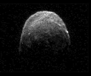 NASA's Deep Space Network antenna in Goldstone, Calif., has captured new radar images of asteroid 2005 YU55 passing close to Earth. The asteroid safely will fly past our planet slightly closer than the Moon's orbit on Nov. 8. The last time a space rock this large came as close to Earth was in 1976, although astronomers did not know about the flyby at the time. The next known approach of an asteroid this size will be in 2028. The image was taken on Nov. 7 at 11:45 a.m. PST, when the asteroid was approximately 860,000 miles (1.38 million kilometers) away from Earth. Tracking of the aircraft carrier-sized asteroid began at Goldstone at 9:30 a.m. PDT on Nov. 4 with the 230-foot-wide (70-meter) antenna and lasted about two hours, with an additional four hours of tracking planned each day from Nov. 6 to 10. Radar observations from the Arecibo Planetary Radar Facility in Puerto Rico will begin Nov. 8, the same day the asteroid will make its closest approach to Earth at 3:28 p.m. PST. The trajectory of asteroid 2005 YU55 is well understood. At the point of closest approach, it will be no closer than 201,700 miles (324,600 kilometers) as measured from the center of Earth, or about 0.85 times the distance from the Moon to Earth. The gravitational influence of the asteroid will have no detectable effect on Earth, including tides and tectonic plates. Although the asteroid is in an orbit that regularly brings it to the vicinity of Earth, Venus and Mars, the 2011 encounter with Earth is the closest it has come for at least the last 200 years.