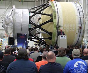 A structural test article of the interim cryogenic propulsion stage (ICPS) for NASA's new deep-space exploration rocket, the Space Launch System (SLS), has been completed at United Launch Alliance in Decatur, Alabama, prior to handover to the Boeing Company of Chicago. Boeing is the prime contractor for the SLS core stage. The first flight test of the SLS, called Exploration Mission-1, will feature a Block 1 configuration for a 70-metric-ton (77-ton) lift capability and carry an uncrewed Orion spacecraft beyond low-Earth orbit to test the performance of the integrated system. The ICPS is the liquid oxygen/liquid hydrogen-based system that will give Orion the big, in-space push needed on that mission to fly beyond the moon before it returns to Earth. The ICPS structural test article ultimately will move to NASA's Marshall Space Flight Center in Huntsville, Alabama, where it will join other structural test articles and simulators that make up the upper portion of the rocket. Engineers will stack the structural test articles and move the 56-foot-tall structure to a test stand to verify the integrity of the hardware and ensure it can withstand the loads it may experience during flight. "Not only is the test version of the ICPS complete, but we've also started building ICPS hardware for the first flight of SLS," said Steve Creech, deputy manager of the Spacecraft and Payload Integration and Evolution Office at Marshall, which manages the SLS Program for the agency. "To date, we have fabricated hydrogen tank domes, tank skins and hydrogen tank cylinders. We're well on our way to being ready for flight." n addition to the ICPS, structural test articles have been completed for: + Orion spacecraft simulator - a replica of the bottom portion of the exploration vehicle that will carry the crew to space, provide emergency abort capability, sustain the crew during the space travel, and provide safe re-entry from deep space return velocities. + Orion stage adapter - connects the Orion to the SLS's ICPS. The adapter technology was used for Orion's first test flight in December 2014. + Core stage simulator - a duplicate of the top of the SLS core stage that is approximately 10 feet tall and 27 feet in diameter. The rocket's entire core stage will tower more than 200 feet tall and house the vehicle's avionics and flight computer. It also will store cryogenic liquid hydrogen and liquid oxygen that will feed the vehicle's RS-25 engines. + A structural test article for the launch vehicle stage adapter, which connects the core stage and the upper stage, is currently in production at Marshall. "ULA is proud to deliver the test article of the ICPS for NASA's Space Launch System," said Gary Wentz, ULA vice president, Human Launch Services. "In partnership with Boeing, ULA created the ICPS through modifications made to our existing Cryogenic Second Stage used on the Delta IV launch vehicle. Congratulations to NASA, Boeing and the entire ULA team for reaching this milestone on schedule." Modifications to the Delta Cryogenic Second Stage include lengthening the liquid hydrogen tank, adding hydrazine bottles for attitude control and making some minor avionics changes to meet the design parameters and performance characteristics as needed by NASA to meet the flight objectives. An Aerojet Rocketdyne RL-10B2 engine - also currently used on the Delta Cryogenic Second Stage - will power the ICPS. NASA continues to examine its timeline for evolving SLS toward the Block 1B configuration with a 105-metric-ton (115-ton) lift capability to enable more ambitious missions. As the SLS evolves, it will ultimately provide an unprecedented lift capability in its Block 2 version capable of lifting 130 metric tons (143 tons) to enable missions even farther into our solar system. For more information about ICPS, visit here