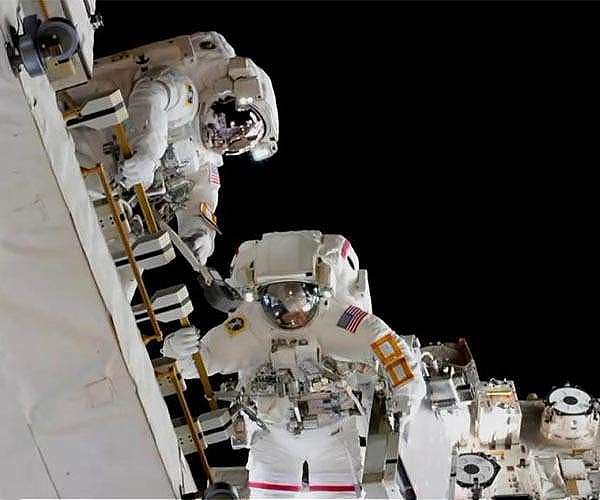 The astronauts returned inside the main space station in about an hour.