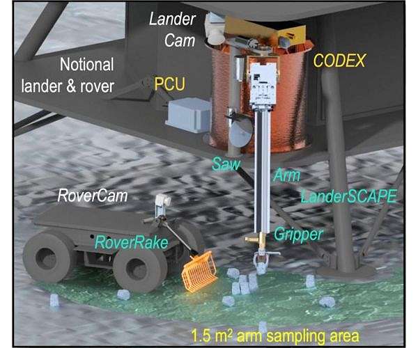 DIMPLE is part of NASA's Payloads and Research Investigations on the Surface of the Moon (PRISM), which will be delivered to Ina through the Commercial Lunar Payload Services (CLPS) initiative. A camera, sample collection arm and the CODEX instrument will remain on the lander, while a rover equipped with a camera and rake will scoop and transport samples back to the lander instruments for detailed study. The DIMPLE team includes The Aerospace Corporation, the University of Bern, Colgate University and Lockheed Martin.