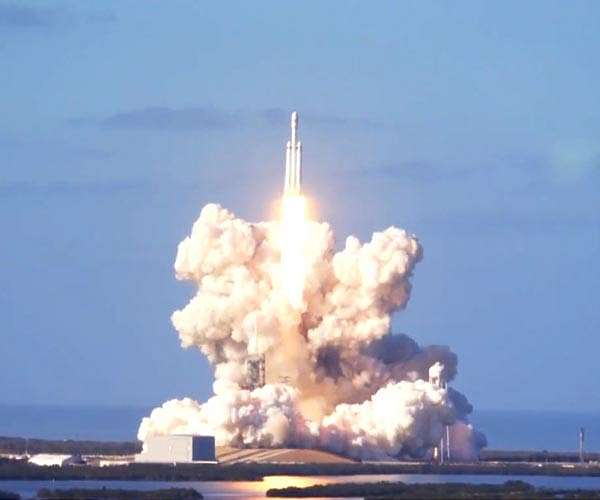 Launch time was at 5:26 p.m. EDT with 2.8 million pounds of propellent fueling all 27 Merlin engines at 5.1 million pounds of thrust.