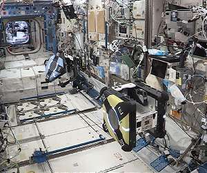Mini robots practise grasping space debris Oberpfaffenhofen, Germany (SPX) Mar 23, 2022 A challenging feat for a little robot: Honey the Astrobee must grasp and transport Bumble the Astrobee. To pull it off, Honey needs to understand Bumble's trajectory, position itself correctly and avoid a collision at all costs. Artificial intelligence (AI) helps the cube-shaped robot to accurately assess the situation. The experiment is part of the TumbleDock/ROAM project, which the German Aerospace Center is carrying out together with its partners on the ISS. The experiments are part of an effort to d ... read more