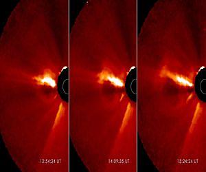 On Jan. 13, 2013, at 2:24 a.m. EST, the sun erupted with an Earth-directed coronal mass ejection or CME. Not to be confused with a solar flare, a CME is a solar phenomenon that can send solar particles into space and reach Earth one to three days later. Experimental NASA research models, based on observations from the Solar Terrestrial Relations Observatory (STEREO) and the ESA/NASA mission the Solar and Heliospheric Observatory, show that the CME left the sun at speeds of 275 miles per second. This is a fairly typical speed for CMEs, though much slower than the fastest ones, which can be almost ten times that speed. When Earth-directed, CMEs can cause a space weather phenomenon called a geomagnetic storm, which occurs when they successfully connect up with the outside of the Earth's magnetic envelope, the magnetosphere, for an extended period of time. In the past, CMEs of this speed have not caused substantial geomagnetic storms. They have caused auroras near the poles but are unlikely to affect electrical systems on Earth or interfere with GPS or satellite-based communications systems. Two active regions -- named AR 11652 and AR 11654 by the National Oceanic and Atmospheric Administration (NOAA) - have produced four low-level M-class flares since Jan. 11. Solar flares are powerful bursts of light and radiation. Harmful radiation from a flare cannot pass through Earth's atmosphere to physically affect humans on the ground, however, when intense enough, they can disturb the atmosphere in the layer where GPS and communications signals travel. M-class flares are the weakest flares that can still cause some space weather effects near Earth. The recent flares caused weak radio blackouts and their effects have already subsided.