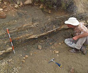 New evidence gathered from the Karoo Basin in South Africa sheds light on a catastrophic extinction event that occurred more than 250 million years ago and wiped out more than 90 percent of life in Earth's oceans and about 70 percent of animal species on land. In research to be presented Nov. 4 at the annual meeting of the Geological Society of America and published in the October issue of the journal Geology, a University of Texas at Dallas geologist and his colleagues describe new findings that challenge the currently accepted model of the "Great Dying" and how it affected land animals. That event occurred at the end of the Permian geologic period. The new evidence derives from a key volcanic ash deposit that the team discovered in rock layers, or strata, that were reported to chronicle the mass extinction. By dating the volcanic ash-bearing deposit, researchers concluded that two phases of this extinction - one on land, the other in the oceans - occurred at least 1 million years apart, as opposed to roughly at the same time, as the geoscience community has assumed for decades. Based on previous dating of shelly fossils and ash beds in marine strata, the die-off among marine species has been well-determined and is generally agreed upon by scientists to have occurred about 251.9 million years ago. However, the timing of the extinction on land has been more challenging to date definitively. This is due, in part, to a dearth of datable volcanic deposits below and above plant and animal fossils in rocks surrounding the boundary where the Permian period ends and the Triassic begins, said Dr. John Geissman, professor and head of the Department of Geosciences and one of the authors of the study. "There has been some concern in the scientific community about whether the extinction among vertebrates on land was actually coincident with that in the marine realm in terms of their timing," Geissman said. "Nonetheless, many researchers have just tacitly assumed that the land event occurred roughly concurrently with the marine extinction." Geissman is part of an international research team led by Dr. Robert Gastaldo, lead author of the Geology study and the Whipple-Coddington Professor of Geology at Colby College in Maine. Gastaldo and his colleagues have spent more than a decade conducting intensive study of exposed rocks in the Karoo Basin in southern South Africa. These regions preserve fossils that chronicle what has long been interpreted as the disappearance of key reptile and amphibian species at the end of the Permian period and the reemergence of completely different species in the Triassic period. The rock layers straddle the space in between where scientists infer the global extinction occurred. Geissman joined Gastaldo's Karoo Basin team about four years ago. As an expert in paleomagnetism, he uses magnetic polarity stratigraphy to help determine the age of ancient rock layers. The process involves examining variations in Earth's magnetic field polarity over time that are preserved in the layers. Two years ago, during a hike with a colleague through an arroyo in the Old Lootsberg Pass area in the Karoo Basin, Geissman noticed a feature in the rocks that looked familiar. "Typically in this area, if there is a gulley, everything exposed will be preserved, which is ideal," Geissman said. "As we were walking up this arroyo I saw something that I knew I'd seen before in the Western U.S. where I teach a field geology class for UT Dallas students, but I hadn't seen it here before. "I knew exactly what it was - it was a fossilized volcanic ash bed." The find was significant for two reasons. One, zircon crystals found in ash beds can be dated geologically by examining the decay rate of uranium isotopes contained in the zircon. And secondly, according to the researchers, this ash bed was the first datable evidence found in close proximity to the position in the layers of rock where the extinction of land species was thought to have taken place. The petrified ash bed lies about 60 meters below the inferred extinction event, which means it resulted from a volcanic eruption that occurred earlier than the extinction. In the world of geology, stratigraphic thickness equates to time - over the eons, layers of sediments are laid down at a rate of so many meters per thousand years, and in this region of the globe, the sedimentation rates translate those 60 meters into, roughly, between 200,000 and 300,000 years, Geissman said. The team dated the volcanic ash bed at about 253.5 million years old, so moving forward in time 200,000 years - or 60 meters - would indicate the terrestrial phase of the extinction took place about 253.3 million years ago, according to the study. "This study places the terrestrial vertebrate turnover about 1.5 million years earlier than the accepted estimated age of the marine end Permian-extinction," Geissman said. "Even if we conservatively say they were a million years apart, that still challenges long-held assumptions about the largest extinction event in Earth's history." Geissman's examination of the distribution of magnetic polarity in rock samples from the Karoo Basin backed up the team's conclusions. In January, Geissman will join his colleagues again for further research in the region. "It's been a lot of fun working with a great group of stimulating colleagues willing to challenge things," Geissman said. "It was very gratifying to walk out along an arroyo, see something that I had seen in much younger rocks in the Western U.S., and just know that the dating should work, and indeed it did. "Part of the satisfaction in this type of research is the serendipity in terms of finding things. It's all about tromping over as much real estate as you can."