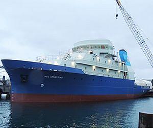 A first-of-class U.S. Navy oceanographic research vessel has successfully completed acceptance trials by the Navy's Board of Inspection and Survey. Trials of the R/V Neil Armstrong evaluated the vessel's major systems and equipment, including its main propulsion system, dynamic positioning system, navigation, cranes and winches, and communication systems. The R/V Neil Armstrong is to be operated by the Woods Hole Oceanographic Institution under a charter party agreement with Office of Naval Research. "These trials are the final major milestone prior to delivering Neil Armstrong," said Mike Kosar, program manager for the Support Ships, Boats and Craft office within the Navy's Program Executive Office, Ships. "Neil Armstrong performed very well during these trials, especially for a first of class vessel. The results of these tests and the outstanding fit, finish and quality of the vessel, stand as a testament to the preparation and effort of our entire shipbuilding team." The ship from Dakota Creek Industries is 238 feet long and features high-efficiency diesel engines, emissions controls for stack gasses, and new information technology tools both for monitoring shipboard systems and for communications. The Armstrong and sister vessels to follow will give scientists the tools and capabilities to support ongoing research in locations such as the Atlantic, western Pacific and Indian Ocean. The ship is expected to be delivered to the Navy in the fall.