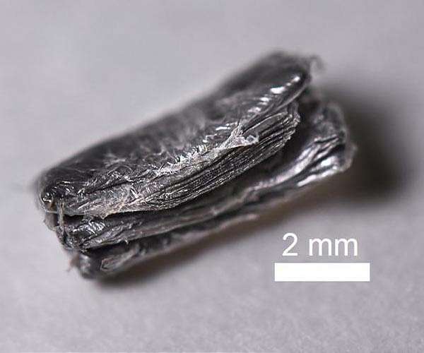 A piece of paper folded over many times able to carry more weight than a flat sheet of paper of the same length. Similarly, folding can also enhance the mechanical properties of graphene. An international team of researchers, affiliated with UNIST has discovered that folding is an efficient strategy to incorporate large-area monolayer graphene films on polymer composites and that doing so improves mechanical reinforcement. This breakthrough has been led by Distinguished Professor Rodney S. Ruoff and his research group from the Center for Multidimensional Carbon Materials (CMCM), within the Institute for Basic Science (IBS) at UNIST. Professor Nicola Pugno from University of Trento in Italy, and Professor Seunghwa Ryu and Dr. Stefano Signetti from KAIST, provided theory and modeling that complemented the experimental results from Professor Ruoff's group. The research group reported that they had succeeded in folding an A5-sized, 400 nanometer thick polycarbonate film in half 12 times. Their findings showed that this new approach using folding provides significant extra stiffening, strengthening, and toughening of the final composite piece incorporating the folded graphene. "This work originated from my interest in folding. When Britney Gallivan was a high school student in California back in 2002, she demonstrated that a single piece of paper, about 1,200 meters in length, could be folded in half twelve times," says Distinguished Professor Ruoff. "Before she succeeded that, it has been traditionally thought that the maximum number of times that paper or other materials can be folded in half was 7 - including by the best mathematicians of the day." "Professor Ruoff and I decided to try folding graphene, with a thin polymer layer attached to it, so that we could also try to achieve 12 folds but from a much smaller starting sheet of material," says Dr. Bin Wang, an IBS Research Fellow and the first author of the study. Using a water-air interface, Dr. Wang first folded an A5-sized, 400-nanometer thick polycarbonate film in half 12 times, yielding a millimeter-thick bulk material - an interesting accomplishment onto itself. He then 'filled' large area monolayer graphene film into the folded laminate by starting with an A5-sized 400-nanometer thick polycarbonate film but now coated with a single layer of A5-sized graphene that had been grown by chemical vapor deposition by Professor Haofei Shi and colleagues from Chongqing Institute of Green and Intelligent Technology in China. "When pulled on, graphene is among the stiffest materials and if it can be made free of defects will be one of the strongest materials. Therefore, optimizing its incorporation in composites for reinforcement is an important scientific challenge," says Distinguished Professor Ruoff. "Dr. Wang also folded this A5-sized bilayer sheet of polycarbonate and graphene 12 times, which means that there were 2^12, thus 4096 layers of graphene present in the final composite structure, that had lateral dimensions of about 3 mm x 2 mm with a thickness of ~3 mm." Larger length x width (that would also be thinner) samples of the final folded sample were needed for mechanical testing. Wang thus made a series of samples each with 10 folds (rather than 12), and used a 'three-point bending test' to study their mechanical response. With a remarkably low volume fraction of graphene of only 0.085% (less than 1 part in 1000), the Young's modulus (intrinsic stiffness), strength (stress that the material breaks at), and toughness modulus (energy consumed in breaking the sample) were enhanced in the folded composite by an average of 73.5%, 73.2%, and 59.1%, respectively. From the graphene folds alone the Young's modulus was increased by 24.2%, strength by 25.4%, and toughness modulus by 14.5%. Note that these values are lower bounds, from the team's modeling. Thus a remarkable mechanical reinforcement from the combined folding and stacking of graphene was found. These experimental results have also been rationalized with theory combined with modeling provided by Professor Pugno's group from University of Trento in Italy. "The fold plays a special role in stiffening and strengthening the composite," says Professor Pugno. "The folded structure can sustain a larger bending force as compared with the analog of stacked but disconnected layers, which could be explained by the improved layer-layer interaction generated from the additional constraint(s) by the folds." Professor Ryu and Dr. Stefano Signetti from KAIST who provided the theory used finite element modeling (FEM) to simulate the bending of the folded laminates and discovered that the folded configuration provides much higher bending stiffness with respect to the stacked configuration with the equivalent 1024 layers of embedded graphene. "The additional constraint given by the folds results in both higher specific deformation energy stored in the composite plate, and also higher bending force at the same imposed displacement as compared with the plate with the same number of stacked layers but without the folds," says Dr. Signetti, a postdoctoral fellow from KAIST. "The models presented in this work could be helpful for the design of other kinds of two dimensional materials embedded in multilayered three dimensional composites, which can be realized at large size," says Distinguished Professor Ruoff. "Besides the mechanical reinforcement, there are other potential applications of the folded laminates." Dr. Wang further noted that "By combining various two dimensional nanomaterials that contribute special functionality, folding can be used to obtain macro-scale materials for many other potential applications, including but not limited to energy storage and conversion, and thermal management."