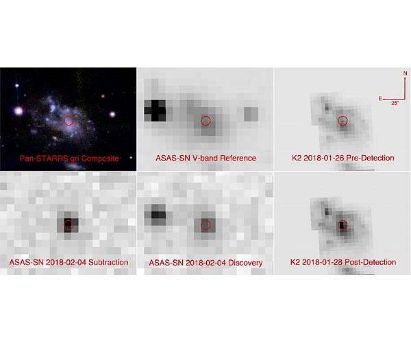 A supernova discovered by an international group of astronomers has provided an unprecedented look at the first moments of a violent stellar explosion. The team, led by the University of Hawaii (UH) Institute for Astronomy's (IfA) Ben Shappee and Carnegie Observatories' Tom Holoien, found a mysterious signature in the light from the explosion's first hours. Their findings are published in a trio of papers in The Astrophysical Journal. This category of supernova, called "Type Ia," is fundamental to our understanding of the cosmos. Their nuclear furnaces are crucial for generating many of the elements around us, and they are used as cosmic rulers to measure distances across the universe. Despite their importance, the actual mechanism that sets off a Type Ia supernova explosion has remained elusive for decades. That's why catching them in the act is crucial. Astronomers have long tried to get detailed data at the initial moments of the explosions, with the hope of figuring out how these phenomena are triggered. For the first time, they succeeded in February of this year, with the discovery of a Type Ia supernova called ASASSN-18bt (also known as SN 2018oh). ASASSN-18bt was discovered by the All-Sky Automated Survey for Supernovae (ASAS-SN), an international network of telescopes headquartered at the Ohio State University, that routinely scans the sky for supernovae and other explosive events. NASA's Kepler Space Telescope was simultaneously able to take complementary data on this event. Kepler was designed to be extremely sensitive to small changes in light for its main mission of detecting extrasolar planets, so it was able to obtain especially detailed information about the explosion's genesis. "ASASSN-18bt is the nearest and brightest supernova yet observed by Kepler, so it offered an excellent opportunity to test the predominant theories of supernova formation," said Shappee, who is lead author on the discovery and early-time paper. "The Kepler light curve is amazing. We can probe the explosion just hours after it happened." In addition to the discovery and pre-discovery data from ASAS-SN, two IfA sky surveys also played crucial roles. Pre-discovery data from the Panoramic Survey Telescope and Rapid Response System (Pan-STARRS) and the Asteroid Terrestrial-impact Last Alert System (ATLAS) helped provided critical information about the color of the brightening supernova. Pan-STARRS even caught ASASSN-18bt within the first day after its explosion. Combining data from ASAS-SN, Kepler, Pan-STARRS, ATLAS, and telescopes from around the world, the astronomers realized that ASASSN-18bt looked unusual during its first couple of days. "Many supernovae show a gradual increase in the light they put out," said Maria Drout, assistant professor at the University of Toronto and third author on the discovery paper. "But for this event, you could clearly see something unusual and exciting happening in the early times - some unexpected additional emission." Type Ia supernovae are thought to originate from the thermonuclear explosion of a white dwarf star - the dead core left over by a Sun-like star after it exhausts its nuclear fuel. Material must be added to the white dwarf from a companion star to trigger the explosion, but the nature of the companion star and how the fuel is transferred has long been debated. One possibility is that this additional light seen during the supernova's early times could be from the exploding white dwarf colliding with the companion star. Although this was the initial hypothesis, detailed comparisons with theoretical models and follow up observation from the Keck telescope demonstrated that this extra light has a different, unexplained origin. "While the steep increase in ASASSN-18bt's early brightness could indicate that the explosion collides with another star, the data doesn't quite fit predictions for how this should appear," Holoien said. "Other possibilities, such as an unusual distribution of radioactive isotopes in the exploded star, could also explain what we saw." Indeed, recent Keck observations looked for the outer layers that would have been stripped from a nearby star by the violent supernova explosion. "If the donor star was there, we would have seen it," says Michael Tucker, a graduate student at the Institute for Astronomy and lead author on the Keck paper. "But we just don't see anything!" This supports a recent hypothesis put forth by visiting-IfA astronomer Maximilian Stritzinger of Aarhus University that there may be two distinct populations of Type Ia supernovae - those that show early emission and those that do not - without the need for a nearby star. "We are finding that supernova explosions are more complicated than we previously thought, and that's half the fun" said Shappee. Thanks to ASAS-SN, ATLAS, Pan-STARRS, and other surveys, we are now monitoring the sky every night, so astronomers will find even more new supernovae and catch them at the moment of explosion. As more of these events are found and studied, they will home in on the solution to the longstanding mystery of how these stellar explosions originate.