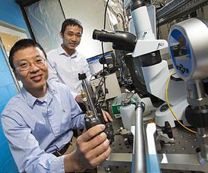 UNL engineers and the U.S. Naval Research Laboratory have designed a next-generation temperature sensor set to improve the measurement of oceanic dynamics that shape marine biology, climate patterns and military operations. The fiber-optic sensor can register significantly smaller temperature changes at roughly 30 times the speed of existing commercial counterparts, said co-designer Ming Han, associate professor of electrical engineering. Han and postdoctoral researcher Guigen Liu achieved the results by attaching a small silicon pillar to the tip of the fused silica glass typically used in fiber optics. The optical density of silicon naturally changes when it's exposed to even slight temperature shifts, making it a sensitive material especially suited for thermometry, according to Han. The ease with which it transfers heat, combined with the small size of the sensor, allows the silicon to register these changes at extremely fast rates. "Silicon is really the perfect material for our applications," Han said. "We already have a lot of microprocessing technology and computer chips made from silicon - it's been used for decades - so it's easy to fabricate very small structures from it." The team also developed a novel signal-processing method that averages multiple wavelength peaks to help reduce signal noise, which can introduce artificial temperature fluctuations and reduce a sensor's precision. These qualities will prove essential to advancing the measurement of the ever-shifting and subtle temperature changes found underwater, according to Han. "The temperature of the ocean can change rapidly and in very small amounts within a turbulent environment," Han said. "It's very difficult to measure because it requires a very high-speed sensor that can precisely detect small changes and (differentiate) a signal from noise." Han and Liu helped meet these extreme demands by designing the sensor in collaboration with Weilin "Will" Hou, an oceanographer from the Naval Research Laboratory. The lab previously pioneered radar and GPS satellite prototypes, among many other technological breakthroughs. "Seventy-two percent of the earth's surface is covered by water, and temperature is one of the key variables in studying the ocean," Hou said. "By introducing a sensor that is a generation ahead of everything else, we have opportunities to address some issues that previous temperature sensors could not. I would say that people are very excited about the results." That excitement stems in part from the array of potential applications made possible by the sensor's superior performance, Hou said. He cited its potential to improve the underwater transmission of optical and acoustic signals, as well as its promise for informing the forecast of climate events. "People who try to predict the circulation of ocean currents and the atmosphere have to know how energies mix - in this case, the heat energy and heat flux," Hou said. "To do that, they need tools to quantify how the heat flows from one direction to another at high rates and on a small scale, which is where this work is focused. "This has a very strong potential influence on oceanography use in general," he said. "We're confident that this collaboration will lead to a significant portfolio of new sensors." The researchers detailed their design in the March 23 edition of the journal Optics Express and are pursuing patent protection for the technology.