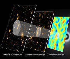 At the UK-Germany National Astronomy Meeting NAM2012, the Baryon Oscillation Spectroscopic Survey (BOSS) team announced the most accurate measurement yet of the distribution of galaxies between five and six billion years ago. This was the key 'pivot' moment at which the expansion of the universe stopped slowing down due to gravity and started to accelerate instead, due to a mysterious force dubbed "dark energy". The nature of this "dark energy" is one of the big mysteries in cosmology today, and scientists need precise measurements of the expansion history of the universe to unravel this mystery - BOSS provides this kind of data. In a set of six joint papers presented, the BOSS team, an international group of scientists with the participation of the Max Planck Institute of Extraterrestrial Physics in Garching, Germany, used these data together with previous measurements to place tight constraints on various cosmological models. The BOSS survey, which is a part of the Sloan Digital Sky Survey (SDSS-III), was started in 2009 to probe the universe at a time when dark energy started to dominate. The survey will continue until 2014, collecting data for 1.35 million galaxies with a custom-designed new spectrograph on the 2.5-metre Sloan Telescope at the Apache Point Observatory in New Mexico, USA. In the first year-and-a-half, it has already mapped the three-dimensional positions of more than a quarter of a million galaxies spread across about one tenth of the sky, yielding the most accurate and complete map of the galaxy distribution up to a distance of about 6 billion light years. Galaxies form a "cosmic web" with a variety of structures which encode valuable information about our universe. One particular feature, the so-called "Baryonic Acoustic Oscillations" (BAO), has been subject of much interest from scientists as it provides them with a "standard rod". BAO are a relic of the early phases of the universe, when it was a hot and dense "soup" of particles. Small variations of density travelled through this "soup" as pressure-driven (sound) waves. As the universe expanded and cooled, the pressure dropped, causing these waves to stall after they had traveled about 500 million light years. These frozen waves imprinted a particular signature on the matter distribution and are visible in the galaxy map today: it is in fact slightly more probable to find pairs of galaxies separated by this scale than at smaller or larger distances. Measurements of the apparent size of the BAO scale in the galaxy distribution then provide information about cosmic distances. Combined with the measurement of the galaxies" redshift - a measure for how fast they move away as a result of the cosmic expansion - scientists can then reconstruct the expansion history of the universe. The new BOSS data, combined with previous analyses, can now constrain the parameters of the standard cosmological model to an accuracy of better than five per cent. "All the different lines of evidence point to the same explanation," says Dr. Ariel Sanchez, scientist at the Max Planck Institute for Extraterrestrial Physics and lead author of one of the six papers released. "The dark energy is consistent with Einstein's cosmological constant: a small but irreducible energy continually stretching space itself, driving the accelerated expansion of the universe." Besides dark energy, the information encoded in the large-scale distribution of galaxies can be used to obtain robust constraints on other important physical parameters such as the curvature of the universe, the neutrino mass, or the phase of inflation in the very early universe. "Current observations show that the universe has to be flat, to an accuracy better than 0.5 per cent," says Ariel Sanchez. "And at the same time as we measure such a global parameter on a cosmic scale, we can also get information about neutrinos on the smallest scales in the cosmos." Neutrinos are tiny, subatomic particles. Even though a number of experiments have shown that they must have mass, scientists do not know how much they actually weigh, as it is difficult to measure this in a laboratory. However, as an additional component in the hot, early phase of the universe the neutrinos affect the growth of structures. The galaxy distribution probed by BOSS provides information about the maximum mass that these neutrinos are allowed to have. "This is really the connection of two extreme worlds, the very large and the very small", adds Ariel Sanchez. The quality of the new data even provided the BOSS team with new clues about cosmic inflation, a period of time shortly after the Big Bang during which the universe expanded at an incredible rate. During cosmic inflation, small regions of space were blown out to form our entire observable universe. At the same time, tiny quantum fluctuations also expanded and became the seeds of the structures that the BOSS data show us. "There is a real zoo of alternative models of inflation. With BOSS we get important new clues about the inflationary phase of the universe, which allows us to pare down the market of available models", remarks Ariel Sanchez. So far, all measurements are highly consistent with the standard cosmological model, which is made up of a few per cent ordinary matter, about a quarter of dark matter, and the rest dark energy. But Ariel Sanchez is cautious: "This is just the beginning. We can expect much tighter constraints once we have the full five years of BOSS data. There are also a number of future projects, such as EUCLID, that will provide even better measurements, bringing us one step closer to finding answers to the big open questions in cosmology."