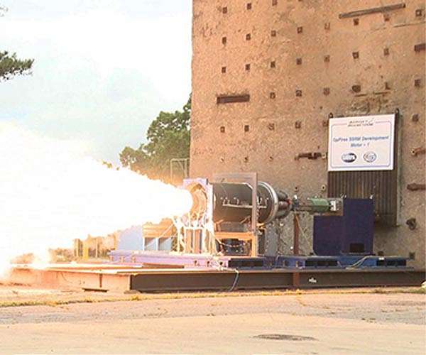 DARPA's Operational Fires (OpFires) program, which is developing and demonstrating new technologies for ground-launched medium-range hypersonic weapons, successfully completed full-scale static test firing of a unique second stage propulsion system. This high-performance, solid-fuel "throttleable" rocket motor can be turned off before burning through all of its fuel, potentially allowing a missile to hit targets located anywhere within a medium-range continuum. Aerojet Rocketdyne performed the test in May at the Army's Redstone Test Center as part of their Phase 2 contract and achieved the primary objective of demonstrating the technology that allows on-demand thrust termination. This capability, combined with the booster's volumetric efficiency, will help advance the realization of hypersonic (greater than five times the speed of sound) missiles that can literally adjust on the fly. "The completion of the initial second stage booster test firing is an important step towards the goal of an advanced system able to precisely deliver a variety of conventional payloads to targets over a wide range of distances," said DARPA program manager Lt. Col. Joshua Stults. Using advancements in digital engineering design and analysis tools, Aerojet was able to predict motor performance to within one percent of observed results. Such high-fidelity tools, along with data from this and subsequent tests, will be used to complete detailed design of the booster that will be part of missile fabrication, assembly, and flight testing in the OpFires project's recently initiated Phase 3b.