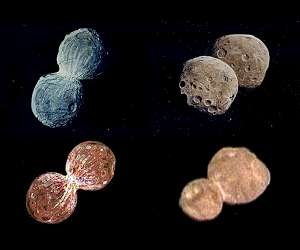 Scientist Anticipated "Snowman" Asteroid Appearance Tucson AZ (SPX) Jan 16, 2019 On Jan. 2, the New Horizons spacecraft made the most distant flyby ever attempted, successfully returning images of the Kuiper Belt object Ultima Thule. While the world is agog at the so-called "snowman" shape of this icy asteroid, the concept is nothing new to PSI scientist and artist, Bill Hartmann. The figure shows paintings that Hartmann made from 1978 to 1996, to illustrate the possible outcome of very low-velocity collisions of distant asteroids. These are compared with the first released co ... read more