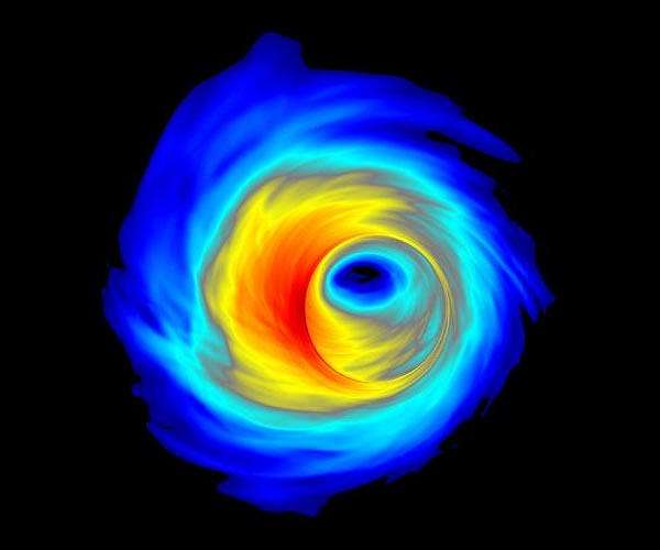 Scientists have reported detecting gravitational waves from 10 black hole mergers to date, but they are still trying to explain the origins of those mergers. The largest merger detected so far seems to have defied previous models because it has a higher spin and mass than the range thought possible. A group of researchers, including Rochester Institute of Technology Assistant Professor Richard O'Shaughnessy, has created simulations that could explain how the merger happened. In a new paper published in Physical Review Letters, the researchers suggest that such large mergers could happen just outside supermassive black holes at the center of active galactic nuclei. Gas, stars, dust and black holes become caught in a region surrounding supermassive black holes known as the accretion disk. The researchers suggest that as black holes circle around in the accretion disk, they eventually collide and merge to form a bigger black hole, which continues to devour smaller black holes, becoming increasingly large in what O'Shaughnessy calls "Pac-Man-like" behavior. "This is a very tantalizing prospect for those of us who work in this field," said O'Shaughnessy, a member of RIT's Center for Computational Relativity and Gravitation (CCRG). "It offers a natural way to explain high mass, high spin binary black hole mergers and to produce binaries in parts of parameter space that the other models cannot populate. There is no way to get certain types of black holes out of these other formation channels." As the LIGO and Virgo collaboration continue to hunt for gravitational waves, O'Shaughnessy and his fellow researchers hope to find signatures of large, spinning black holes that could help confirm their models. If their assumptions are correct, it could help us better understand how the cosmic web of galaxies assembles. "This could be a unique way of probing the physics around these supermassive black holes in a way that could not be probed in any other way," said O'Shaughnessy. "It offers unique insight into how the centers of galaxies grow, which is of course essential to understanding how galaxies as a whole grow, which explains most of the structure in the universe."