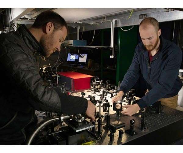 A team of University of Oregon physicists has developed a fast, sensitive bolometer that can measure light at and far above room-temperature. The technology out of the Aleman Lab, known as a "graphene nanomechanical bolometer," leverages a new method and an ultrathin material, and could have wide-spread use in everything from astronomy and medicine to fire fighting. "This tool is the fastest and most sensitive in its class," said Benjamin Aleman, a professor of physics at the University of Oregon and a member of the UO's Center for Optical, Molecular, and Quantum Science and an associate of the Phil and Penny Knight Campus for Accelerating Scientific Impact. The device, which consists of a trampoline-shaped piece of graphene suspended over a hole, offers an alternative to conventional electronic light detectors, like those found in a smartphone's camera. Instead, the Aleman Lab uses a mechanical method to relate absorbed light to small changes in the mechanical resonance frequency of the graphene trampoline. The way the technology works is similar to the effect of banging a drum on a hot day. As the instrument heats up under the piping sun, the drumhead membrane will expand and its pitch changes - emitting a different tone than it would at cooler temperatures. The waves of light do the same thing to a mechanical bolometer. As light hits the device's drumhead, the membrane heats up, expands and the vibrational pitch changes. The physicists can track these pitch changes to measure how much light hit the device. "This is a very new way of detecting light," said David Miller, a doctoral student in the Aleman Lab. "We're using a purely mechanical method to turn light into sound. This has the advantage of being able to see a much broader range of light." Conventional detectors are very reliable at reading high energy light, like visible light or X-rays, but less adept at measuring the longer wavelengths on the electromagnetic spectrum, including infrared and radio waves, Miller said. This mechanical device fills that void and allows the detection of light of nearly any wavelength - which could be especially useful in astronomical observations, thermal and medical body imaging and seeing deep into the infrared. The team constructed the device by first stretching a thin sheet of atoms over a hole etched into a piece of silicon. Then, using a focused ion beam technique, developed previously in the lab, they cut the sheet to resemble a trampoline. The device is just one-tenth the width of a human hair, while the material used for the trampoline is even smaller - a single atom thick, about a million times thinner than that same strand of hair. "This system uses graphene, which is just a single layer of atoms. It's as small as it can be." said Andrew Blaikie, another doctoral student in the Aleman Lab and lead author on the paper, which was published in Nature Communications this week. Graphene, a material discovered in 2004 is the key ingredient for the technology's success. Although it's the thinnest possible material, graphene is 200 times stronger than steel. It won the 2010 Nobel Prize in Physics for its potential to revolutionize physics and engineering. Graphene's mechanical properties allow the material to respond to temperature changes incredibly fast, enabling it to measure light at equally speedy rates, Blaikie said. "Graphene offered a tantalizing prospect for ultrasensitive and ultrafast light detection," Blaikie said. "It also possesses an unmatched ability to measure nearly any wavelength of light and can withstand much higher temperatures than conventional detectors." The team of physicists was able to harness the powers of graphene through a mechanical approach to measuring light. The material has performed poorly through the traditional methods of using electrical resistance to measure light - mainly due to its temperature-dependent electrical resistivity and need to be chilled to ultralow temperatures to be useful in conventional detectors. When the researchers realized they could turn light into sound through their mechanical method, they were able to unlock the prospects of graphene and create the ultrafast, ultrasensitive device that excels at and far above room temperature. Its ability to perform at such a wide range of temperatures is one of the device's most advantageous qualities when it comes to measuring light, Blaikie said. It can operate at room temperature, which allows for critical portability, and it can perform under high heat, which is a benefit that traditional light detectors don't offer. Many detectors fail with the "sunburn effect," when they begin to breakdown as temperatures spike. "Graphene is a thermally stable material that can withstand temperatures over 2,000 degrees Celsius, so that our detector, unlike electronic detectors, could possibly take pictures on hot planets like Venus or Mercury" Blaikie said. Its versatility and ultrasensitive nature potentially make the nanomechanical bolometer a useful tool in many arenas across science, medicine, industrial manufacturing and astronomy. The Aleman Lab has a patent pending for the technology with the U.S. Patent and Trademark Office. "We hope this device will help scientists crack the mysteries of our sun and other stars, improve medical diagnostics through safer thermal X-ray imaging, and help firefighters see better in fires to save more lives," Aleman said.
