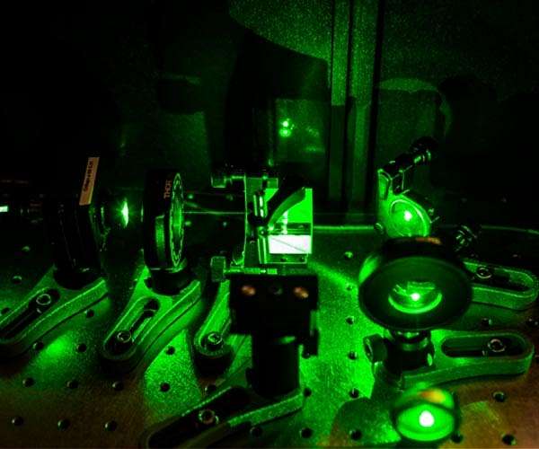 A new way of measuring atomic-scale magnetic fields with great precision, not only up and down but sideways as well, has been developed by researchers at MIT. The new tool could be useful in applications as diverse as mapping the electrical impulses inside a firing neuron, characterizing new magnetic materials, and probing exotic quantum physical phenomena. The new approach is described in the journal Physical Review Letters in a paper by graduate student Yi-Xiang Liu, former graduate student Ashok Ajoy, and professor of nuclear science and engineering Paola Cappellaro. The technique builds on a platform already developed to probe magnetic fields with high precision, using tiny defects in diamond called nitrogen-vacancy (NV) centers. These defects consist of two adjacent places in the diamond's orderly lattice of carbon atoms where carbon atoms are missing; one of them is replaced by a nitrogen atom, and the other is left empty. This leaves missing bonds in the structure, with electrons that are extremely sensitive to tiny variations in their environment, be they electrical, magnetic, or light-based. Previous uses of single NV centers to detect magnetic fields have been extremely precise but only capable of measuring those variations along a single dimension, aligned with the sensor axis. But for some applications, such as mapping out the connections between neurons by measuring the exact direction of each firing impulse, it would be useful to measure the sideways component of the magnetic field as well. Essentially, the new method solves that problem by using a secondary oscillator provided by the nitrogen atom's nuclear spin. The sideways component of the field to be measured nudges the orientation of the secondary oscillator. By knocking it slightly off-axis, the sideways component induces a kind of wobble that appears as a periodic fluctuation of the field aligned with the sensor, thus turning that perpendicular component into a wave pattern superimposed on the primary, static magnetic field measurement. This can then be mathematically converted back to determine the magnitude of the sideways component. The method provides as much precision in this second dimension as in the first dimension, Liu explains, while still using a single sensor, thus retaining its nanoscale spatial resolution. In order to read out the results, the researchers use an optical confocal microscope that makes use of a special property of the NV centers: When exposed to green light, they emit a red glow, or fluorescence, whose intensity depends on their exact spin state. These NV centers can function as qubits, the quantum-computing equivalent of the bits used in ordinary computing. "We can tell the spin state from the fluorescence," Liu explains. "If it's dark," producing less fluorescence, "that's a 'one' state, and if it's bright, that's a 'zero' state," she says. "If the fluorescence is some number in between then the spin state is somewhere in between 'zero' and 'one.'" The needle of a simple magnetic compass tells the direction of a magnetic field, but not its strength. Some existing devices for measuring magnetic fields can do the opposite, measuring the field's strength precisely along one direction, but they tell nothing about the overall orientation of that field. That directional information is what the new detector system can n provide. In this new kind of "compass," Liu says, "we can tell where it's pointing from the brightness of the fluorescence," and the variations in that brightness. The primary field is indicated by the overall, steady brightness level, whereas the wobble introduced by knocking the magnetic field off-axis shows up as a regular, wave-like variation of that brightness, which can then be measured precisely. An interesting application for this technique would be to put the diamond NV centers in contact with a neuron, Liu says. When the cell fires its action potential to trigger another cell, the system should be able to detect not only the intensity of its signal, but also its direction, thus helping to map out the connections and see which cells are triggering which others. Similarly, in testing new magnetic materials that might be suitable for data storage or other applications, the new system should enable a detailed measurement of the magnitude and orientation of magnetic fields in the material. Unlike some other systems that require extremely low temperatures to operate, this new magnetic sensor system can work well at ordinary room temperature, Liu says, making it feasible to test biological samples without damaging them. The technology for this new approach is already available. "You can do it now, but you need to first take some time to calibrate the system," Liu says. For now, the system only provides a measurement of the total perpendicular component of the magnetic field, not its exact orientation. "Now, we only extract the total transverse component; we can't pinpoint the direction," Liu says. But adding that third dimensional component could be done by introducing an added, static magnetic field as a reference point. "As long as we can calibrate that reference field," she says, it would be possible to get the full three-dimensional information about the field's orientation, and "there are many ways to do that." While this research was specifically aimed at measuring magnetic fields, the researchers say the same basic methodology could be used to measure other properties of molecules including rotation, pressure, electric fields, and other characteristics. The research was supported by the National Science Foundation and the U.S. Army Research Office.