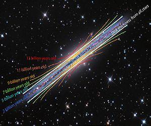 A long-standing puzzle regarding the nature of disk galaxies has finally been solved by a team of astronomers led by Ivan Minchev from the Leibniz Institute for Astrophysics Potsdam (AIP), using state-of-the-art theoretical models. The new study shows that groups of stars with the same age always flare as the result of massive galactic collisions. When taken all together, these flares, nested like the petals of a blooming rose, puff up the disk and constitute what astronomers call the "thick" disk. "We were able to show for the first time that galactic thick disks are not composed only of old stars but must also contain young stars at larger distances from the galactic center," explains Minchev. "The flaring seen in groups of stars with the same age is caused mostly by the bombardment of small satellite galaxies. These cosmological car crashes pummel the young disk and cause it to swell and flare. " To arrive at this new result, the team ran numerical simulations on massive super computers and examined the structure of their simulated galaxies. The scientists grouped stars by common age and looked at where they were located. What they found was that stars of a given age group constituted a disk with flared edges, much like the mouth of a trumpet. This flaring is unavoidable, being caused when the main galaxy collides with smaller galaxies - a generic feature of how scientists believe galaxies form. Since the oldest stars formed in the inner region of the galaxy, for them this flaring occurs closer to the center, while for the younger stars it occurs at the periphery of the galaxy. When put together, the combination of flaring from all the stars produces the elusive thick disk, as observed. One of the most fascinating aspects of galaxies is that their stars can be separated into two components: a fluffy thick disk that enshrouds a thin disk. Until now the understanding has been that stars in the thick disk were the oldest. In observations of the Milky Way the oldest stars are found to be closer to the center, while younger stars are more extended. Scientists agree that this separation is likely due to an "inside-out" formation scenario, wherein the Milky Way forms stars first in its center and later in its outer region, much like how cities grow radially from a medieval center to modern suburbs. Observing the structure of the Milky Way is tricky, since we are located within its disk, roughly half way from the center. Instead, astronomers have to rely on the stars that surround us and build a model from this limited perspective. Nevertheless, if the Milky Way were similar to other galaxies and its thick disk were composed only of old, centrally concentrated stars, then one would naively expect its thick disk to be short. But in other galaxies the thick disks are observed to be as extended as the galaxies themselves. Minchev's results resolve this contradiction by requiring that thick disk stars become younger in the disk outskirts. "With our new understanding of the formation of, and interplay between, galactic thin and thick disks, we have moved much closer to solving one of the most fundamental problems of Galactic astrophysics.," concludes Ivan Minchev. "Our predictions will soon be tested with data from the Gaia space mission and using high precision instruments, such as MUSE on the Very Large Telescope."