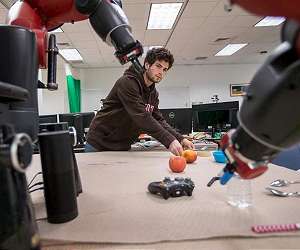 If someone asks you to hand them a wrench from a table full of different sized wrenches, you'd probably pause and ask, "which one?" Robotics researchers from Brown University have now developed an algorithm that lets robots do the same thing - ask for clarification when they're not sure what a person wants. The research, which will be presented this spring at the International Conference on Robotics and Automation in Singapore, comes from Brown's Humans to Robots Lab led by computer science professor Stefanie Tellex. Her work focuses on human-robot collaboration - making robots that can be good helpers to people at home and in the workplace. "Fetching objects is an important task that we want collaborative robots to be able to do," Tellex said. "But it's easy for the robot to make errors, either by misunderstanding what we want, or by being in situations where commands are ambiguous. So what we wanted to do here was come up with a way for the robot to ask a question when it's not sure." Tellex's lab had previously developed an algorithm that enables robots to receive speech commands as well as information from human gestures. It's a form of interaction that people use all the time. When we ask someone for an object, we'll often point to it at the same time. Tellex and her team showed that when robots could combine the speech commands with gestures, they got better at correctly interpreting user commands. Still, the system isn't perfect. It runs into problems when there are lots of very similar objects in close proximity to each other. Take the workshop table, for example. Simply asking for "a wrench" isn't specific enough, and it might not be clear which one a person is pointing to if a number of wrenches are clustered close together. "What we want in these situations is for the robot to be able to signal that it's confused and ask a question rather than just fetching the wrong object," Tellex said. The new algorithm does that. It enables the robot to quantify how certain it is that it knows what a user wants. When its certainty is high, the robot will simply hand over the object as requested. When it's not so certain, the robot makes its best guess about what the person wants, then asks for confirmation by hovering its gripper over the object and asking, "this one?" One of the important features of the system is that the robot doesn't ask questions with every interaction. It asks intelligently. "When the robot is certain, we don't want it to ask a question because it just takes up time," said Eric Rosen, an undergraduate working in Tellex's lab and co-lead author of the research paper with graduate student David Whitney. "But when it is ambiguous, we want it to ask questions because mistakes can be more costly in terms of time." And even though the system asks only a very simple question, "it's able to make important inferences based on the answer," Whitney said. For example, say a user asks for a wrench and there are two wrenches on a table. If the user tells the robot that its first guess was wrong, the algorithm deduces that the other wrench must be the one that the user wants. It will then hand that one over without asking another question. Those kinds of inferences, known as implicatures, make the algorithm more efficient. To test their system, the researchers asked untrained participants to come into the lab and interact with Baxter, a popular industrial and research robot. Participants asked Baxter for objects under different conditions. The team could set the robot to never ask questions, ask a question every time, or to ask questions only when uncertain. The trials showed that asking questions intelligently using the new algorithm was significantly better in terms of accuracy and speed compared to the other two conditions. The system worked so well, in fact, that participants thought the robot had capabilities it actually didn't have. For the purposes of the study, the researchers used a very simple language model - one that only understood the names of objects. However, participants told the researchers they thought the robot could understand prepositional phrases like, "on the left" or "closest to me," which it could not. They also thought the robot might be tracking their eye-gaze, which it wasn't. All the system was doing was making smart inferences after asking a very simple question. In future work, Tellex and her team would like to combine the algorithm with more robust speech recognition systems, which might further increase the system's accuracy and speed. Ultimately, Tellex says, she hopes systems like this will help robots become useful collaborators both at home and at work.