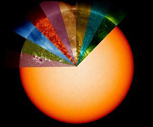 Telescopes help distant objects appear bigger, but this is only one of their advantages. Telescopes can also collect light in ranges that our eyes alone cannot see, providing scientists ways of observing a whole host of material and processes that would otherwise be inaccessible. A new NASA movie of the sun based on data from NASA's Solar Dynamics Observatory, or SDO, shows the wide range of wavelengths - invisible to the naked eye - that the telescope can view. SDO converts the wavelengths into an image humans can see, and the light is colorized into a rainbow of colors. As the colors sweep around the sun in the movie, viewers should note how different the same area of the sun appears. This happens because each wavelength of light represents solar material at specific temperatures. Different wavelengths convey information about different components of the sun's surface and atmosphere, so scientists use them to paint a full picture of our constantly changing and varying star. Yellow light of 5800 Angstroms, for example, generally emanates from material of about 10,000 degrees F (5700 degrees C), which represents the surface of the sun. Extreme ultraviolet light of 94 Angstroms, which is typically colorized in green in SDO images, comes from atoms that are about 11 million degrees F (6,300,000 degrees C) and is a good wavelength for looking at solar flares, which can reach such high temperatures. By examining pictures of the sun in a variety of wavelengths - as is done not only by SDO, but also by NASA's Interface Region Imaging Spectrograph, NASA's Solar Terrestrial Relations Observatory and the European Space Agency/NASA Solar and Heliospheric Observatory -- scientists can track how particles and heat move through the sun's atmosphere.