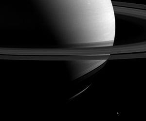 Washington DC (SPX) Jan 12, 2016 It is easy to forget just how large Saturn is, at around 10 times the diameter of Earth. And with a diameter of about 72,400 miles (116,500 kilometers), the planet simply dwarfs its retinue of moons. One of those satellites, Tethys (660 miles or 1,062 kilometers across), is seen here at lower right. This view looks toward the sunlit side of the rings from about 8 degrees above the ring plane. The image was taken with the Cassini spacecraft wide-angle camera on March 7, 2015 using a spectral filter that preferentially admits wavelengths of near-infrared light centered at 752 nanometers. Tethys has been brightened by a factor of 2 to increase its visibility. The view was acquired at a distance of approximately 1.6 million miles (2.6 million kilometers) from Saturn. Image scale is 10 miles (16 kilometers) per pixel. Tethys is slightly closer at 1.5 million miles (2.4 million kilometers) away, for an image scale of 9 miles (14 kilometers) per pixel. The Cassini mission is a cooperative project of NASA, ESA (the European Space Agency) and the Italian Space Agency. The Jet Propulsion Laboratory, a division of the California Institute of Technology in Pasadena, manages the mission for NASA's Science Mission Directorate, Washington. The Cassini orbiter and its two onboard cameras were designed, developed and assembled at JPL. The imaging operations center is based at the Space Science Institute in Boulder, Colorado.