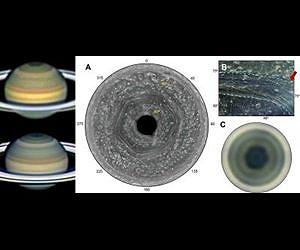 In 1980 and 1981 NASA's Voyager 1 and 2 space probes passed for the first time over the planet Saturn, located 1,500 million km from the Sun. Among their numerous discoveries they observed a strange, hexagon-shaped structure in the planet's uppermost clouds surrounding its north pole. The hexagon remained virtually static, without moving, vis-a-vis the planet's overall rotation that was not accurately known. What is more, the images captured by the Voyager probes found that the clouds were moving rapidly inside the hexagon in an enclosed jet stream and were being dragged by winds travelling at over 400 km/h. Thirty years later -the equivalent of one Saturn year, in other words, the time the planet takes to go all the way around the Sun- and over more than six consecutive years, researchers in the UPV/EHU's Planetary Sciences Group, in collaboration with astronomers from various countries, were able to observe Saturn's northern polar region in detail once again and confirmed that the hexagon continued in place. After measuring the positions of the hexagon vertices with great precision, they determined that its movement remains extremely stable, and on the basis of the cloud movements, that the jet stream inside it remains unchanged. For this study the researchers used images taken from the Earth between 2008 and 2014; they used, among others, the astronomical cameras PlanetCam (developed by the Planetary Sciences Group itself) and Astralux, fitted to the telescopes of the Calar Alto Observatory in Almeria (Spain); in addition, they used the very high resolution images obtained by the Cassini spacecraft, which has been orbiting Saturn since 2004. Due to the tilt of approximately 27 degrees of the planet Saturn, its polar atmosphere undergoes intense seasonable variations with long polar nights lasting over seven years, followed by a long period of 23 years of variable illumination. However, the seasonal variations do not affect the hexagon and its jet stream at all, so both are part of an extensive wave, deeply rooted in Saturn's atmosphere. The UPV/EHU researchers suggest that the hexagon and its stream are the manifestation of a "Rossby wave" similar to those that form in the mid-latitudes of the earth. On our planet the jet stream meanders from west to east and brings, associated with it, the system of areas of low pressure and anticyclones which we have been seeing regularly on weather maps. On Saturn, a hydrogen gas planet, ten times the size of the Earth, cold in its upper clouds, without a solid surface, and with an atmosphere as deep as that of an ocean, "the hexagonal wavy motion of the jet stream is expected to be propagated vertically and reveal to us aspects of the planet's hidden atmosphere," pointed out Agustin Sanchez-Lavega, Head of the Planetary Sciences research group. "The movement of the hexagon could therefore be linked to the depths of Saturn, and the rotation period of this structure, which, as we have been able to ascertain, is 10 hours, 39 minutes and 23 seconds, could be that of the planet itself," he added. Saturn is the only planet in the Solar System whose rotation period is not yet known.