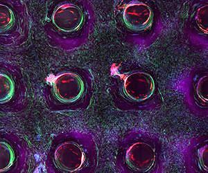 A team at the Wyss Institute for Biologically Inspired Engineering at Harvard University and the Harvard John A. Paulson School for Engineering and Applied Sciences (SEAS) has invented a method for 3D bioprinting thick vascularized tissue constructs composed of human stem cells, extracellular matrix, and circulatory channels lined with endothelial blood vessel cells. The resulting network of vasculature contained within these deep tissues enables fluids, nutrients and cell growth factors to be controllably perfused uniformly throughout the tissue. The advance is reported March 7 in the journal Proceedings of the National Academy of Sciences. "This latest work extends the capabilities of our multi-material bioprinting platform to thick human tissues, bringing us one step closer to creating architectures for tissue repair and regeneration," says Wyss Core Faculty member Jennifer A. Lewis, Sc.D., senior author on the study, who is also the Hansorg Wyss Professor of Biologically Inspired Engineering at SEAS. To date, scaling up human tissues built of a variety of cell types has been limited by a lack of robust methods for embedding life-sustaining vascular networks. Building on their earlier work, Lewis and her team have now increased the tissue thickness threshold by nearly tenfold, setting the stage for future advances in tissue engineering and repair. The method combines vascular plumbing with living cells and an extracellular matrix, enabling the structures to function as living tissues. In the study, Lewis and her team showed that their 3D bioprinted tissues could sustain and function as living tissue architectures for upwards of six weeks. In the study, Lewis' team demonstrated the 3D printing of one centimeter-thick tissue containing human bone marrow stem cells surrounded by connective tissue. By pumping bone growth factors through the supporting vasculature lined with the same endothelial cells found in our blood vessels, the team induced cell development toward bone cells over the course of one month. "This research will help to establish the fundamental scientific understanding required for bioprinting of vascularized living tissues," Zhijian Pei, National Science Foundation Program Director for the Directorate for Engineering Division of Civil, Mechanical and Manufacturing Innovation, which funded the project. "Research such as this enables broader use of 3-D human tissues for drug safety and toxicity screening and, ultimately, for tissue repair and regeneration." Lewis' novel 3D bioprinting method uses a customizable, printed silicone mold to house and plumb the printed tissue structure. Inside this mold, a grid of vascular channels is printed first, over which ink containing living stem cells is then printed. The inks are self-supporting and strong enough to hold shape as the structure's size increases with each layer of deposition. At intersections meeting within the foundational vascular grid, vertical vascular pillars are printed, which interconnect a pervasive network of microvessels throughout all dimensions of the stem cell-laden tissue. After printing, a liquid composed of fibroblasts and extracellular matrix fills in the open regions around the 3D printed tissue, cross linking the entire structure. The resulting soft tissue structure is replete with blood vessels, and via a single inlet and outlet on opposite ends of the chip, can be immediately perfused with nutrients to ensure survival of the cells. The pervasive vasculature facilitates stem cell differentiation by enabling delivery of cell growth factors throughout all areas of the tissue. To achieve a variety of tissue shapes, thicknesses, and compositions, the shape of the printed silicone chip can be customized and the cell inks can be tuned to include a wide variety of cell types. "Having the vasculature pre-fabricated within the tissue allows enhanced cell functionality at the deep core of the tissue, and gives us the ability to modulate those cell functions through the use of perfusable substances such as growth factors," said David Kolesky, a graduate researcher at the Wyss Institute and SEAS and one of the study's first authors. "Jennifer and her team are shifting the paradigm in the field of tissue engineering based on their unique bioprinting approach," said Wyss Institute Founding Director Donald Ingber, M.D., Ph.D., who is also the Judah Folkman Professor of Vascular Biology at Harvard Medical School and the Vascular Biology program at Boston Children's Hospital, and Professor of Bioengineering at SEAS. "Their ability to build living 3D vascularized tissues from the bottom-up provides a potential way to form macroscale functional tissue replacements that can be surgically connected to the body's own blood vessels to provide immediate perfusion of these artificial tissues, and thus, greatly increase their likelihood of survival. This would overcome many of the problems that held back tissue engineering from clinical success in the past." In addition to Lewis and Kolesky, other team members on the new study include co-first authors Kimberly Homan, Ph.D., Research Associate at the Wyss Institute, and Mark Skylar-Scott, Ph.D., Postdoctoral Fellow at the Wyss Institute.