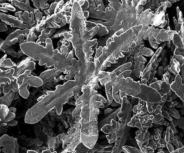 Scientists in New Zealand and Australia working at the level of atoms created something unexpected: tiny metallic snowflakes. Why's that significant? Because coaxing individual atoms to cooperate in desired ways is leading to a revolution in engineering and technology via nanomaterials (And creating snowflakes is cool.) Nanoscale structures can aid electronic manufacturing, make materials stronger yet lighter, or aid environmental clean-ups by binding to toxins. To create metallic nanocrystals, New Zealand and Australian scientists have been experimenting with gallium, a soft, silvery metal which is used in semiconductors and, unusually, liquifies at just above room temperature. Their results were just reported in the journal Science. Professor Nicola Gaston and research fellow Dr Steph Lambie, both of Waipapa Taumata Rau, University of Auckland, and Dr Krista Steenbergen of Te Herenga Waka, Victoria University of Wellington, collaborated with colleagues in Australia led by Professor Kourosh Kalantar-Zadeh at the University of New South Wales. The Australian team worked in the lab with nickel, copper, zinc, tin, platinum, bismuth, silver and aluminium, growing metal crystals in a liquid solvent of gallium. Metals were dissolved in gallium at high temperatures. Once cooled, the metallic crystals emerged while the gallium remained liquid. The New Zealand team, part of the MacDiarmid Institute for Advanced Materials and Nanotechnology, a national Centre of Research Excellence, carried out simulations of molecular dynamics to explain why differently shaped crystals emerge from different metals. (The government's Marsden Fund supported the research.) "What we are learning is that the structure of the liquid gallium is very important," says Gaston. "That's novel because we usually think of liquids as lacking structure or being only randomly structured." Interactions between the atomistic structures of the different metals and the liquid gallium cause differently shaped crystals to emerge, the scientists showed. The crystals included cubes, rods, hexagonal plates and the zinc snowflake shapes. The six-branched symmetry of zinc, with each atom surrounded by six neighbours at equivalent distances, accounts for the snowflake design. "In contrast to top-down approaches to forming nanostructure - by cutting away material - this bottom-up approaches relies on atoms self-assembling," says Gaston. "This is how nature makes nanoparticles, and is both less wasteful and much more precise than top-down methods." She says the research has opened up a new, unexplored pathway for metallic nanostructures. "There's also something very cool in creating a metallic snowflake!"
