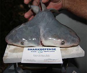 Scientists have confirmed the discovery of the first-ever, two-headed bull shark. The study, led by Michigan State University and appearing in the Journal of Fish Biology, confirmed the specimen, found in the Gulf of Mexico April 7, 2011, was a single shark with two heads, rather than conjoined twins. There have been other species of sharks, such as blue sharks and tope sharks, born with two heads. This is the first record of dicephalia in a bull shark, said Michael Wagner, MSU assistant professor of fisheries and wildlife, who confirmed the discovery with colleagues at the Florida Keys Community College. "This is certainly one of those interesting and rarely detected phenomena," Wagner said. "It's good that we have this documented as part of the world's natural history, but we'd certainly have to find many more before we could draw any conclusions about what caused this." The difficulty of finding such oddities is due, in part, to creatures with abnormalities dying shortly after birth. In this instance, a fisherman found the two-headed shark when he opened the uterus of an adult shark. The two-headed shark died shortly thereafter and had little, if any, chance to survive in the wild, Wagner added. "You'll see many more cases of two-headed lizards and snakes," he said. "That's because those organisms are often bred in captivity, and the breeders are more likely to observe the anomalies." The shark was brought to the marine science department at Florida Keys Community College. From there, it was transported to Michigan State's campus for further examination. Wagner and his team were able to detail the discovery with magnetic resonance imaging. Without damaging the unique specimen, the MRIs revealed two distinct heads, hearts and stomachs with the remainder of the body joining together in back half of the animal to form a single tail. As part of the published brief, Wagner noted that some may want to attribute the deformed shark to exposure to pollutants. "Given the timing of the shark's discovery with the Deepwater Horizon oil spill, I could see how some people may want to jump to conclusions," Wagner said. "Making that leap is unwarranted. We simply have no evidence to support that cause or any other." Wagner's research is supported in part by MSU AgBioResearch.