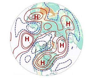 Scientists have fingerprinted a distinctive atmospheric wave pattern high above the Northern Hemisphere that can foreshadow the emergence of summertime heat waves in the United States more than two weeks in advance. The new research, led by scientists at the National Center for Atmospheric Research (NCAR), could potentially enable forecasts of the likelihood of U.S. heat waves 15-20 days out, giving society more time to prepare for these often-deadly events. The research team discerned the pattern by analyzing a 12,000-year simulation of the atmosphere over the Northern Hemisphere. During those times when a distinctive "wavenumber-5" pattern emerged, a major summertime heat wave became more likely to subsequently build over the United States. "It may be useful to monitor the atmosphere, looking for this pattern, if we find that it precedes heat waves in a predictable way," says NCAR scientist Haiyan Teng, the lead author. "This gives us a potential source to predict heat waves beyond the typical range of weather forecasts." The wavenumber-5 pattern refers to a sequence of alternating high- and low-pressure systems (five of each) that form a ring circling the northern midlatitudes, several miles above the surface. This pattern can lend itself to slow-moving weather features, raising the odds for stagnant conditions often associated with prolonged heat spells. The study is being published next week in Nature Geoscience. It was funded by the U.S. Department of Energy, NASA, and the National Science Foundation (NSF), which is NCAR's sponsor. NASA scientists helped guide the project and are involved in broader research in this area.