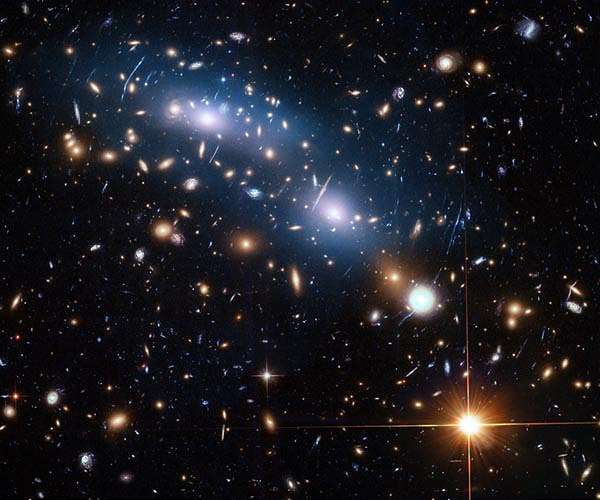 A method of weighing the quantities of matter in galaxy clusters - the largest objects in our universe - has shown a balance between the amounts of hot gas, stars and other materials. The results are the first to use observational data to measure this balance, which was theorized 20 years ago, and will yield fresh insight into the relationship between ordinary matter that emits light and dark matter, and about how our universe is expanding. Galaxy clusters are the largest objects in the universe, each composed of around 1,000 massive galaxies. They contain vast amounts of dark matter, along with hot gas and cooler "ordinary matter", such as stars and cooler gas. In a new study, published in Nature Communications, an international team led by astrophysicists from the University of Michigan in the US and the University of Birmingham in the UK used data from the Local Cluster Substructure Survey (LoCuSS) to measure the connections between the three main mass components that comprise galaxy clusters - dark matter, hot gas, and stars. Members of the research team had spent 12 years gathering data, which span a factor of 10 million in wavelength, using the Chandra and XMM-Newton satellites, the ROSAT All-sky survey, Subaru telescope, United Kingdom Infrared Telescope (UKIRT), Mayall telecope, the Sunyaev Zeldovich Array, and the Planck satellite. Using sophisticated statistical models and algorithms built by Dr Arya Farahi during his doctoral studies at the University of Michigan the team was able to conclude that the sum of gas and stars across the clusters that they studied is a nearly fixed fraction of the dark matter mass. This means that as stars form, the amount of hot gas available will decrease proportionally "This validates the predictions of the prevailing cold dark matter theory. Everything is consistent with our current understanding of the universe," said Dr Farahi, currently a McWilliams Postdoctoral Fellow in the Department of Physics at Carnegie Mellon University. Dr Graham Smith of the School of Physics and Astronomy at the University of Birmingham and Principal Investigator of LoCuSS, says: "A certain amount of material within the universe collapses to form galaxy clusters. "But once they are formed, these clusters are 'closed boxes'. The hot gas has either formed stars, or still remains as gas, but the overall quantity remains constant." "This research is powered by more than a decade of telescope investments," adds Professor August E. Evrard, of the University of Michigan. "Using this high quality data, we were able to characterise 41 nearby galaxy clusters and find a special relationship, specifically anti-correlated behaviour between the mass in stars and the mass in hot gas. This is significant because these two measurements together give us the best indication of the total system mass." The findings will be crucial to astronomers' efforts to measure the properties of the universe as a whole. By gaining a better understanding of the internal physics of galaxy clusters, researchers will be able to better understand the behaviour of dark energy and the processes behind the expansion of the universe. "Galaxy clusters are intrinsically fascinating, but in many ways still mysterious objects," adds Dr Smith. "Unpicking the complex astrophysics governing these objects will open many doors onto a broader understanding of the universe. Essentially, if we want to be able to claim that we understand how the universe works, we need to understand galaxy clusters." Data of the kind studied by the team will grow by several orders of magnitude over the coming decades thanks to next-generation telescopes such as the Large Synoptic Survey Telescope (LSST) which is currently under construction in Chile, and e-ROSITA, a new x-ray satellite. Both will begin observations in the early 2020s. "These measurements are laying a foundation for precise science with clusters of galaxies," says Professor Alexis Finoguenov, a member of the team based at the University of Helsinki.