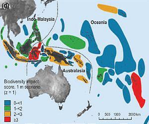 Their results show how the loss of habitat that goes along with losses of land area constitutes a serious threat to the continued existence of endemic vertebrate species in some of the Southeast Asian and Pacific islands. They discovered that endemic species - found nowhere else but on certain islands - and species that are already endangered face the greatest area loss from sea level rise. Their findings raise concerns not only about theses individual species but also the global impact of sea level rise for island and coastal species.