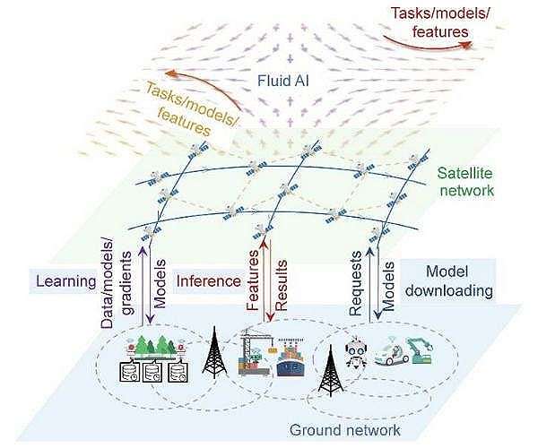 Fluid learning targets long model training times in SGINs with an infrastructure free model dispersal federated learning scheme. In this scheme, satellite motion helps mix model parameters across regions, converting orbital movement from a hindrance into a resource for training. According to the study, this approach can reach higher test accuracy in fewer training rounds than existing methods while avoiding reliance on expensive inter satellite links or dense ground infrastructure.