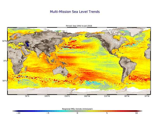 Scientists are gathering in the Azores this week to share findings on how satellite has revealed changes in the height of the sea, ice, inland bodies of water and more. Of concern to all is the fact that global sea level has not only been rising steadily over the last 25 years, but recently it is rising at a much faster rate. The 25 Years of Progress in Radar Altimetry Symposium gives participants the opportunity to share information gained from this particular sort of satellite instrument. Radar altimeters record the surface topography along the satellite's ground track. They precisely measure the height of water, land and ice by timing the interval between the transmission and reception of very short radar pulses. This is the only technology that can measure, systematically and globally, changes in the height of the ocean - and is therefore essential for monitoring sea-level rise. The 25-year record of altimetry data allows scientists to determine trends. For example, between 1993 and 2018 the global ocean rose 3.2 mm every year, on average. But, altimetry measurements also reveal that the over the last five years the global ocean has risen, on average, 4.8 mm a year. Anny Cazenave from the Laboratoire d'Etudes en Geophysique et Oceanographie Spatiales said, "Satellite altimeters are an essential tool for monitoring sea-level rise. We use reference missions such as the CNES-NASA series of Jason satellites along with other missions such as the Copernicus Sentinel-3 mission to gather a time series of data to understand how sea level is changing in the long term. "This information shows that sea level has been rising at an average rate of about 3 mm a year since these records began in 1993. However, recent re-analysis of our records has shown that sea-level rise is accelerating because of global warming." ESA's Jerome Benveniste added, "With many millions living in coastal communities around the world, sea-level rise is a major concern. The information we get from satellite altimeters is essential for understanding how fast our seas are rising so that decision-makers are equipped to take appropriate mitigating action. "At this week's symposium we are not only looking back over the last 25 years of satellite altimetry, but we are also looking to the future as we have the Copernicus Sentinel-6 mission in development and also a number of candidate satellite missions being studied. "It is vital that we have satellite altimeters in the future to continue this long-term record of change." While trends and averages are important, it is equally important to understand regional differences. In some places the height of the sea is rising and in other places it is falling. There are a number of reasons for this. For example, when seawater warms it also expands, leading to a phenomenon called thermal expansion. Although thermal expansion is the biggest cause of sea-level rise as a consequence of climate change, there are many local differences. These differences can be caused by events such as El Nino, for example. Ice loss from the continental glaciers and from the polar ice sheets is also one of the most critical drivers of our rising seas. Ice loss from glaciers, Greenland and Antarctica accounts for about 45% of sea-level rise. Another cause is discharge from waterbodies on land, but how much this contributes to sea-level rise is more uncertain. As the symposium progresses, other scientific findings and discussions on the future will be discussed.