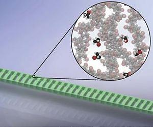 Using microscopic polymer light resonators that expand in the presence of specific gases, researchers at MIT's Quantum Photonics Laboratory have developed new optical sensors with predicted detection levels in the parts-per-billion range. Optical sensors are ideal for detecting trace gas concentrations due to their high signal-to-noise ratio, compact, lightweight nature, and immunity to electromagnetic interference. Although other optical gas sensors had been developed before, the MIT team conceived an extremely sensitive, compact way to detect vanishingly small amounts of target molecules. They describe their new approach in the journal Applied Physics Letters, from AIP Publishing. The researchers fabricated wavelength-scale photonic crystal cavities from PMMA, an inexpensive and flexible polymer that swells when it comes into contact with a target gas. The polymer is infused with fluorescent dye, which emits selectively at the resonant wavelength of the cavity through a process called the Purcell effect. At this resonance, a specific color of light reflects back and forth a few thousand times before eventually leaking out. A spectral filter detects this small color shift, which can occur at even sub-nanometer level swelling of the cavity, and in turn reveals the gas concentration. "These polymers are often used as coatings on other materials, so they're abundant and safe to handle. Because of their deformation in response to biochemical substances, cavity sensors made entirely of this polymer lead to a sensor with faster response and much higher sensitivity," said Hannah Clevenson. Clevenson is a PhD student in the electrical engineering and computer science department at MIT, who led the experimental effort in the lab of principal investigator Dirk Englund. PMMA can be treated to interact specifically with a wide range of different target chemicals, making the MIT team's sensor design highly versatile. There's a wide range of potential applications for the sensor, said Clevenson, "from industrial sensing in large chemical plants for safety applications, to environmental sensing out in the field, to homeland security applications for detecting toxic gases, to medical settings, where the polymer could be treated for specific antibodies." The thin PMMA polymer films, which are 400 nanometers thick, are patterned with structures that are 8-10 micrometers long by 600 nanometers wide and suspended in the air. In one experiment, the films were embedded on tissue paper, which allowed 80 percent of the sensors to be suspended over the air gaps in the paper. Surrounding the PMMA film with air is important, Clevenson said, both because it allows the device to swell when exposed to the target gas, and because the optical properties of air allow the device to be designed to trap light travelling in the polymer film. The team found that these sensors are easily reusable since the polymer shrinks back to its original length once the targeted gas has been removed. The current experimental sensitivity of the devices is 10 parts per million, but the team predicts that with further refinement, they could detect gases with part-per-billion concentration levels. "High sensitivity gas sensor based on high-Q suspended polymer photonic crystal nanocavity," is authored by H. Clevenson, P. Desjardins, X. Gan, D. Englund.