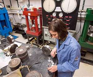 The temperature of Earth's interior affects everything from the movement of tectonic plates to the formation of the planet. A new study led by Woods Hole Oceanographic Institution (WHOI) suggests the mantle - the mostly solid, rocky part of Earth's interior that lies between its super-heated core and its outer crustal layer - may be hotter than previously believed. The new finding, published March 3 in the journal Science, could change how scientists think about many issues in Earth science including how ocean basins form. "At mid-ocean ridges, the tectonic plates that form the seafloor gradually spread apart," said the study's lead author Emily Sarafian, a graduate student in the MIT-WHOI Joint Program. "Rock from the upper mantle slowly rises to fill the void between the plates, melting as the pressure decreases, then cooling and re-solidifying to form new crust along the ocean bottom. We wanted to be able to model this process, so we needed to know the temperature at which rising mantle rock starts to melt." But determining that temperature isn't easy. Since it's not possible to measure the mantle's temperature directly, geologists have to estimate it through laboratory experiments that simulate the high pressures and temperatures inside the Earth. Water is a critical component of the equation: the more water (or hydrogen) in rock, the lower the temperature at which it will melt. The peridotite rock that makes up the upper mantle is known to contain a small amount of water. "But we don't know specifically how the addition of water changes this melting point," said Sarafian's advisor, WHOI geochemist Glenn Gaetani. "So there's still a lot of uncertainty." To figure out how the water content of mantle rock affects its melting point, Sarafian conducted a series of lab experiments using a piston-cylinder apparatus , a machine that uses electrical current, heavy metal plates, and stacks of pistons in order to magnify force to recreate the high temperatures and pressures found deep inside the Earth. Following standard experimental methodology, Sarafian created a synthetic mantle sample. She used a known, standardized mineral composition and dried it out in an oven to remove as much water as possible. Until now, in experiments like these, scientists studying the composition of rocks have had to assume their starting material was completely dry, because the mineral grains they're working with are too small to analyze for water. After running their experiments, they correct their experimentally determined melting point to account for the amount of water known to be in the mantle rock. "The problem is, the starting materials are powders, and they adsorb atmospheric water," Sarafian said. "So, whether you added water or not, there's water in your experiment." Sarafian took a different approach. She modified her starting sample by adding spheres of a mineral called olivine, which occurs naturally in the mantle. The spheres were still tiny - about 300 micrometers in diameter, or the size of fine sand grains - but they were large enough for Sarafian to analyze their water content using secondary ion mass spectrometry (SIMS). From there, she was able to calculate the water content of her entire starting sample. To her surprise, she found it contained approximately the same amount of water known to be in the mantle. Based on her results, Sarafian concluded that mantle melting had to be starting at a shallower depth under the seafloor than previously expected. To verify her results, Sarafian turned magnetotellurics - a technique that analyzes the electrical conductivity of the crust and mantle under the seafloor. Molten rock conducts electricity much more than solid rock, and using magnetotelluric data, geophysicists can produce an image showing where melting is occurring in the mantle. But a magnetotelluric analysis published in Nature in 2013 by researchers at the Scripps Institution of Oceanography in San Diego showed that mantle rock was melting at a deeper depth under the sea floor than Sarafian's experimental data had suggested. At first, Sarafian's experimental results and the magnetotelluric observations seemed to conflict, but she knew both had to be correct. Reconciling the temperatures and pressures Sarafian measured in her experiments with the melting depth from the Scripps study led her to a startling conclusion: The oceanic upper mantle must be 60 C (~110 F) hotter than current estimates," Sarafian said. A 60-degree increase may not sound like a lot compared to a molten mantle temperature of more than 1,400 C. But Sarafian and Gaetani say the result is significant. For example, a hotter mantle would be more fluid, helping to explain the movement of rigid tectonic plates.