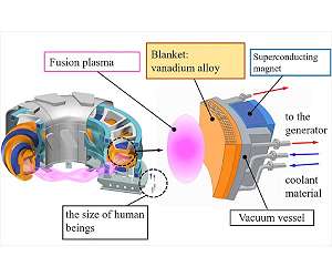 Developing new materials for the fusion reactor Tokyo, Japan (SPX) Dec 12, 2018 In the future fusion reactor, plasma is confined by using the magnetic field inside the doughnut-shaped vacuum vessel. The blanket is in a location where it almost touches the plasma, and as if to enfold the plasma the blanket is placed on the inner surface of the vacuum chamber. The blanket, by absorbing the high-speed particles generated by the fusion reaction inside the plasma, releases heat and a higher temperature is achieved. Then, cooling materials are passed through piping in the blanket, ... read more