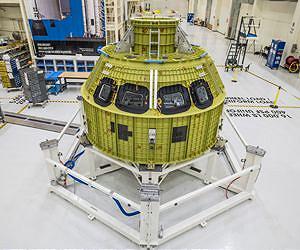 The Orion crew module pressure vessel for NASA's Exploration Mission-1 (EM-1) is secured in an upgraded version of a test stand called the birdcage in the high bay inside the Neil Armstrong Operations and Checkout (O and C) Building at the agency's Kennedy Space Center in Florida. The pressure vessel, which is the crew module's underlying structure, arrived Feb. 1 aboard NASA's Super Guppy aircraft at the Shuttle Landing Facility operated by Space Florida at Kennedy. The module was transported from the agency's Michoud Assembly Facility in New Orleans, where its seven large pieces were welded together over the course of several months. At Kennedy, it was offloaded from the aircraft and transported to the O and C. In the high bay, Orion will be prepared for its mission. It will be outfitted with the systems and subsystems necessary for flight, including its heat-shielding thermal protection system. The Orion spacecraft will launch aboard NASA's Space Launch System rocket on a test flight that will take it thousands of miles beyond the moon over the course of about a three-week mission. For more information on EM-1, visit here